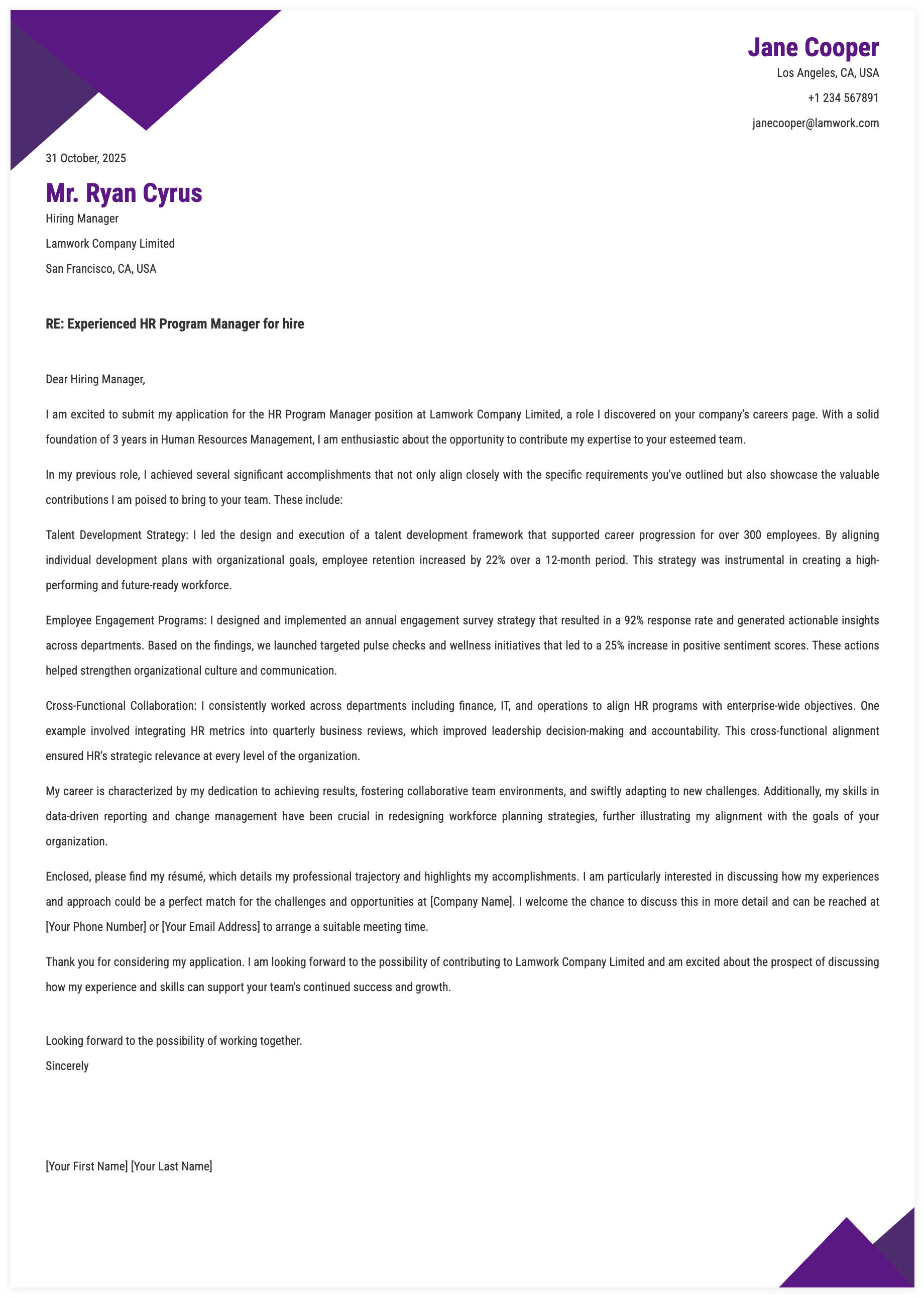 What Are the Qualifications and Requirements for HR Program Manager in a Cover Letter?