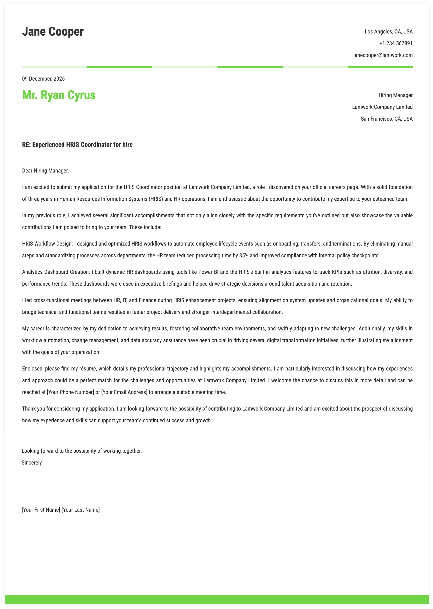 2. Performance Expectations for HRIS Coordinator Cover Letter