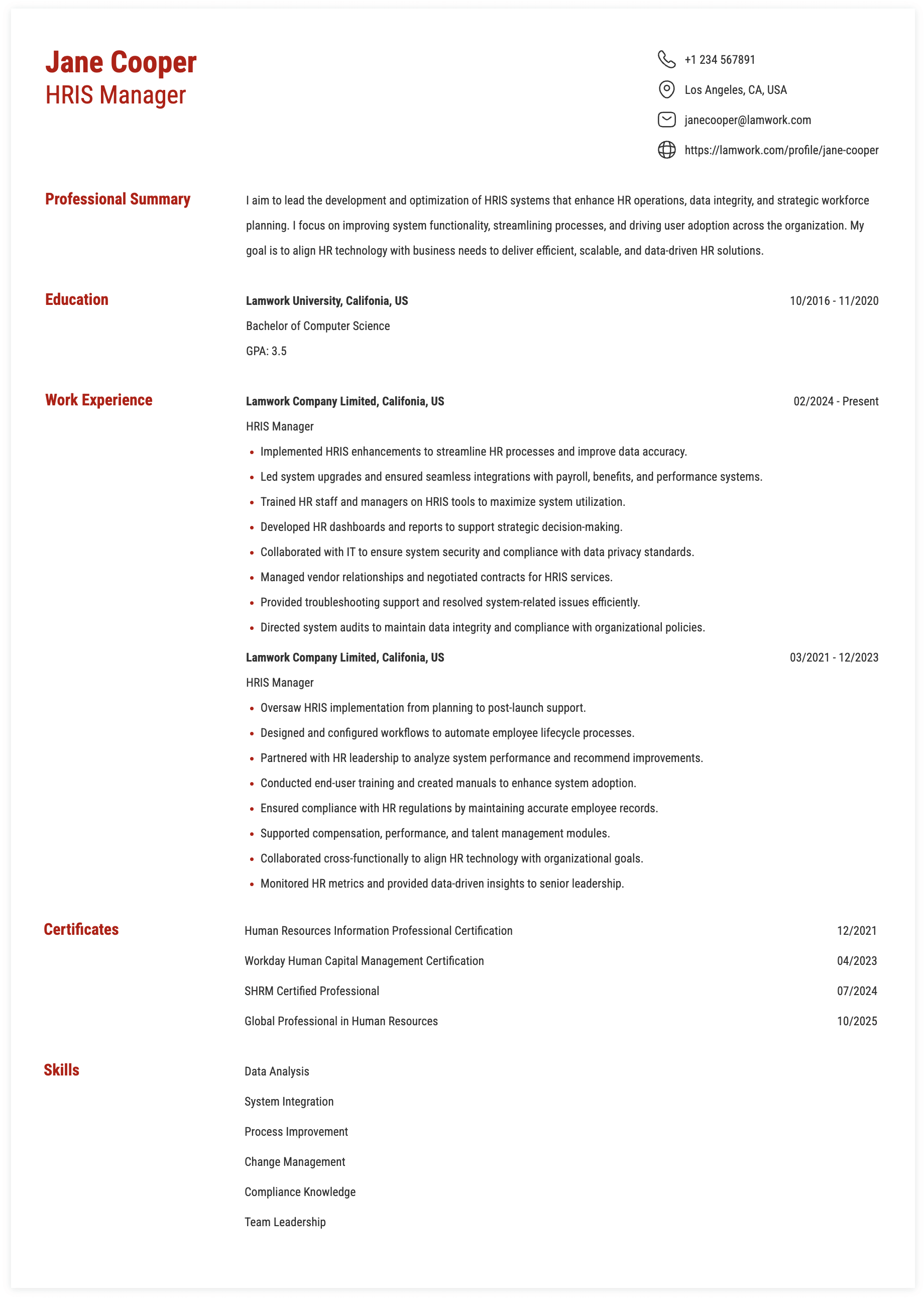 - HRIS Expertise (Hard Skills)