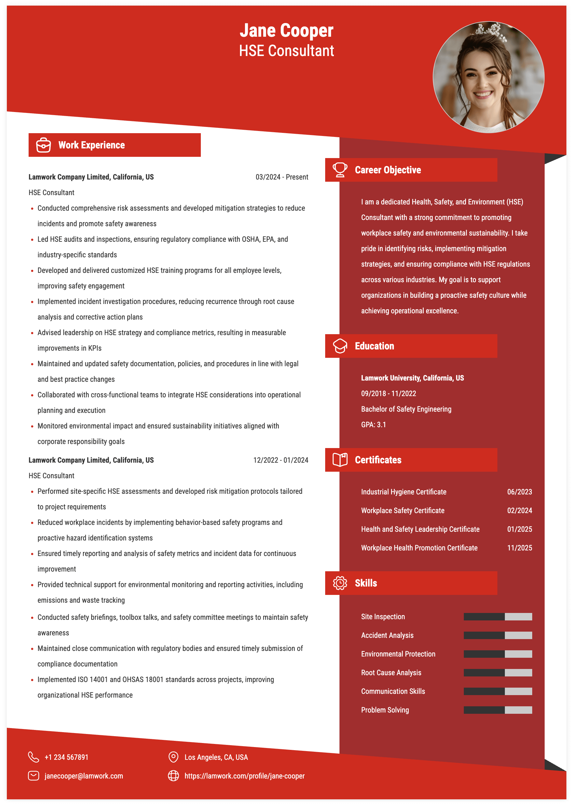 HSE CONSULTANT RESUME EXAMPLE