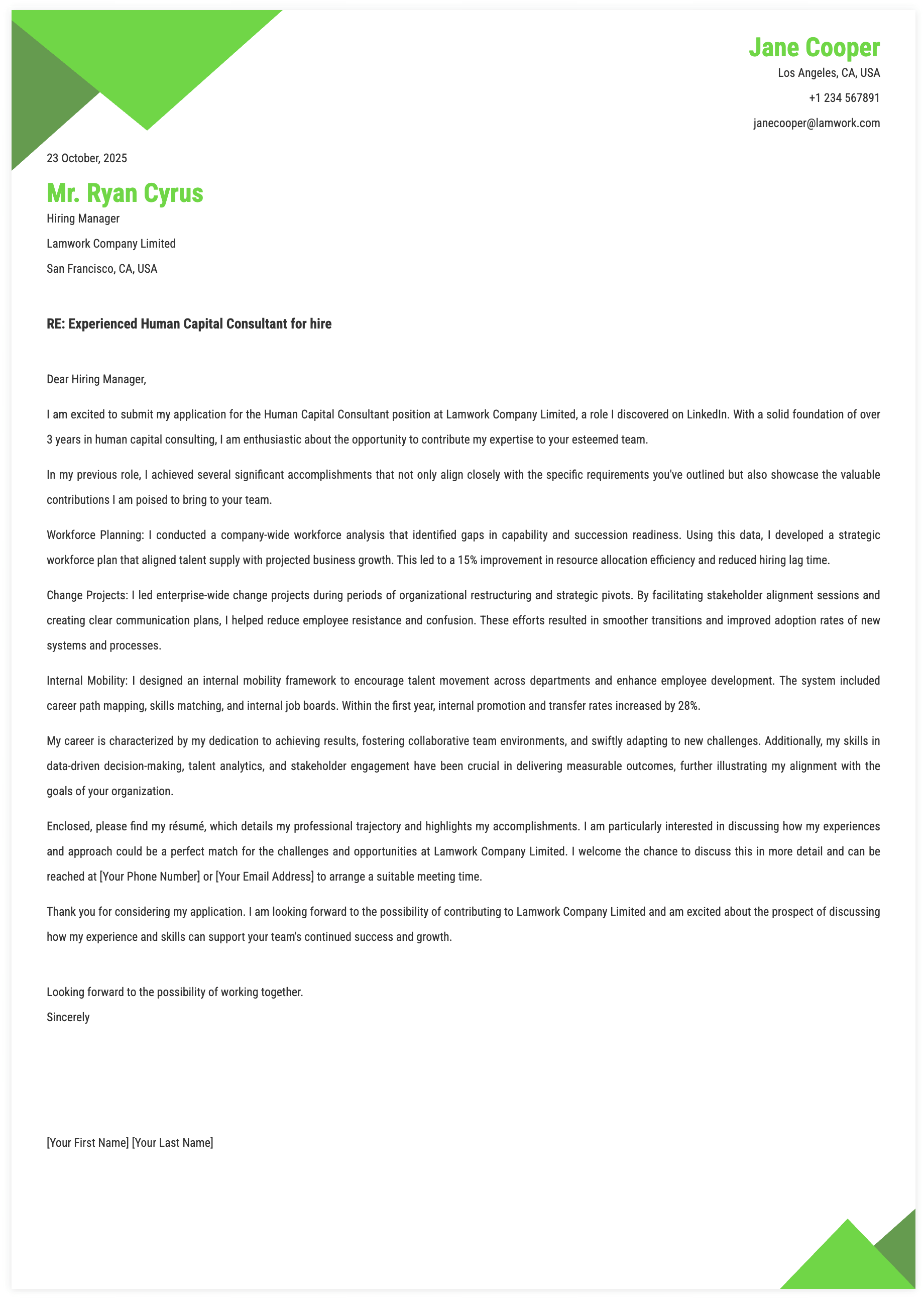 2. Requirements and Experience for Human Capital Consultant Cover Letter