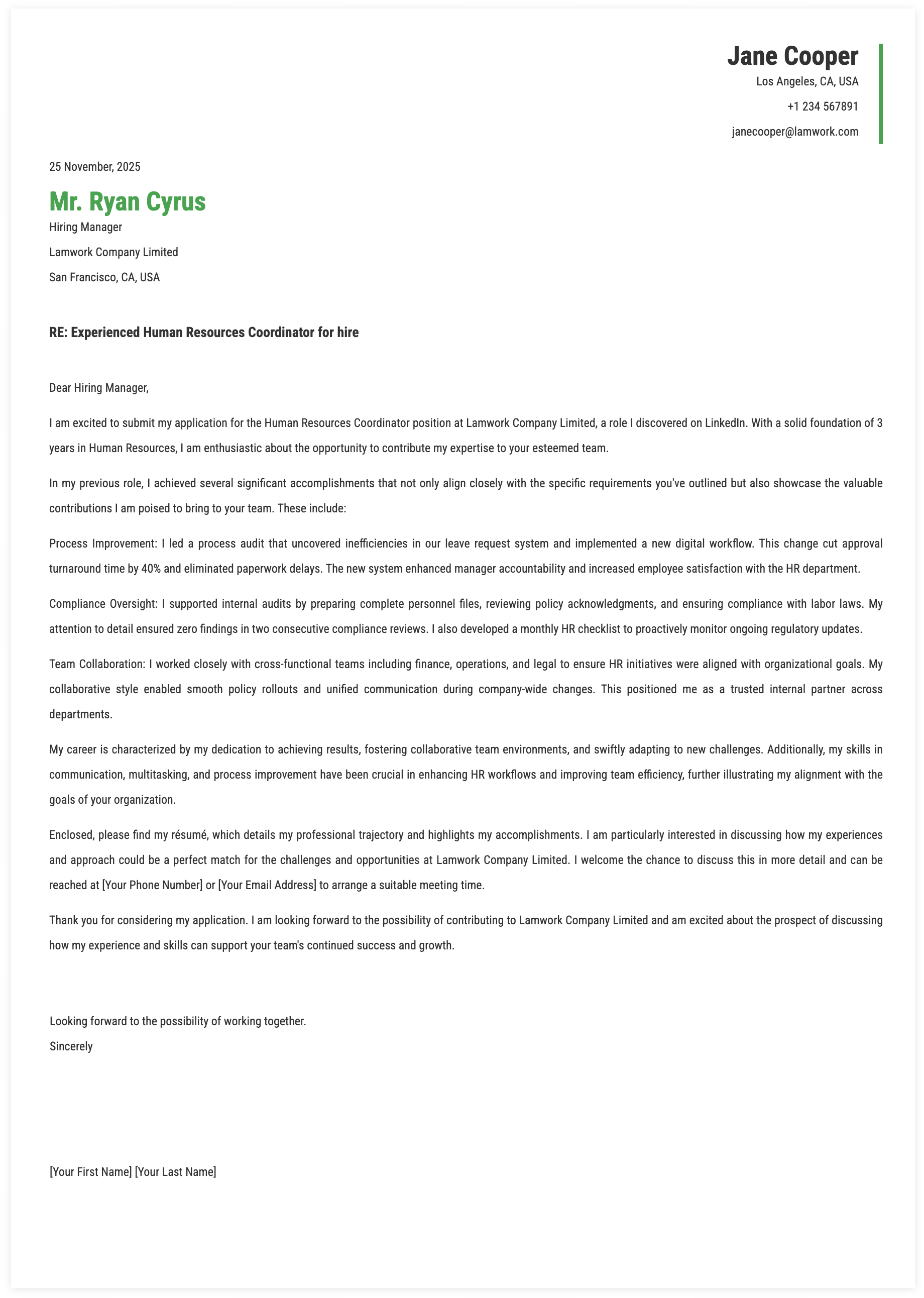 28. Accomplishments for Human Resources Coordinator Cover Letter