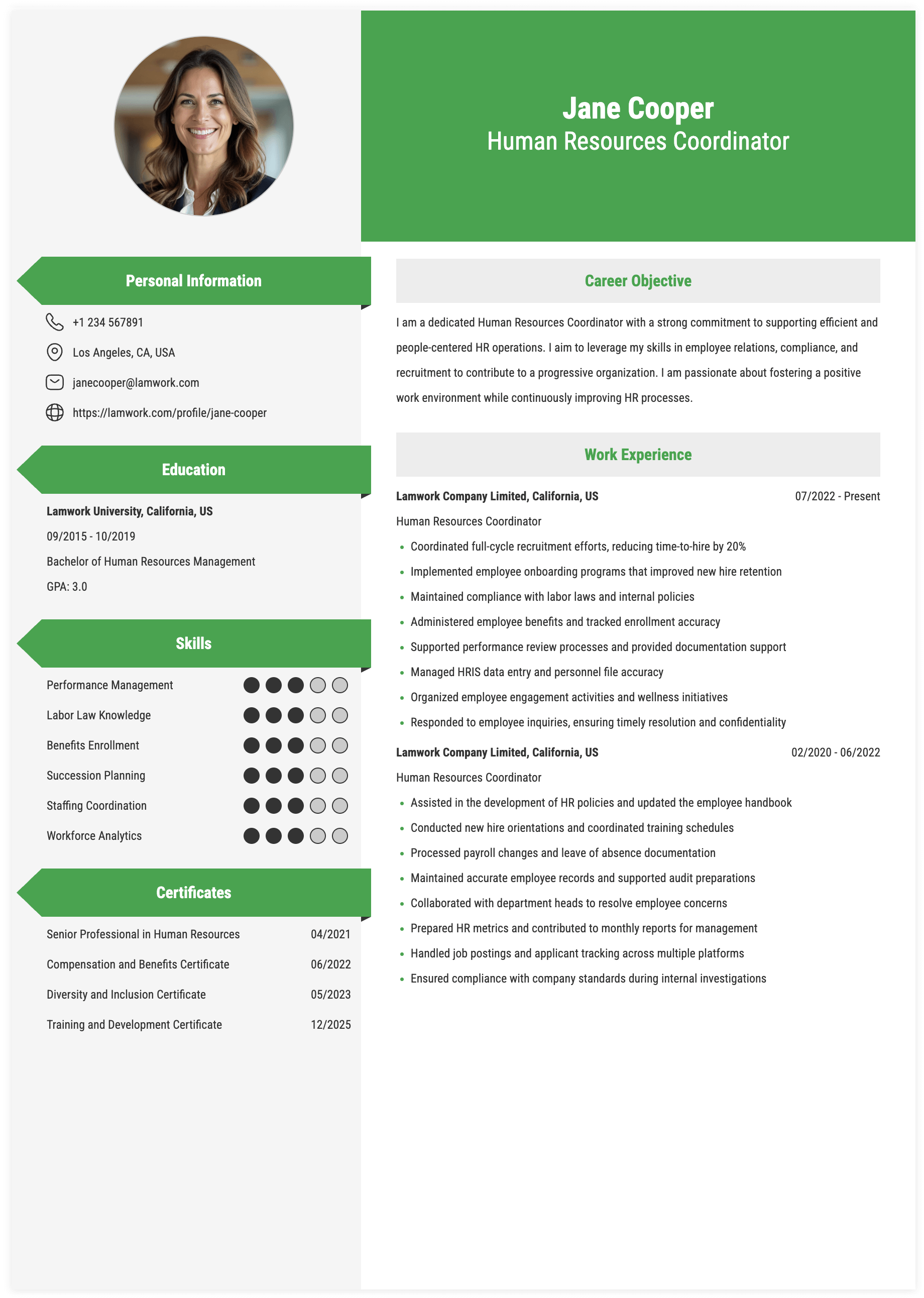 Updated: Nov 25, 2025 - The Human Resources (HR) Coordinator coordinates and supports recruitment activities, including interview scheduling, candidate screenings, and onboarding documentation. This role maintains employee records, tracks certifications and compliance requirements, and ensures timely updates in the learning management system. The coordinator also manages internal communications and events, processes HR reports and expenses, and assists with general employee and applicant inquiries.