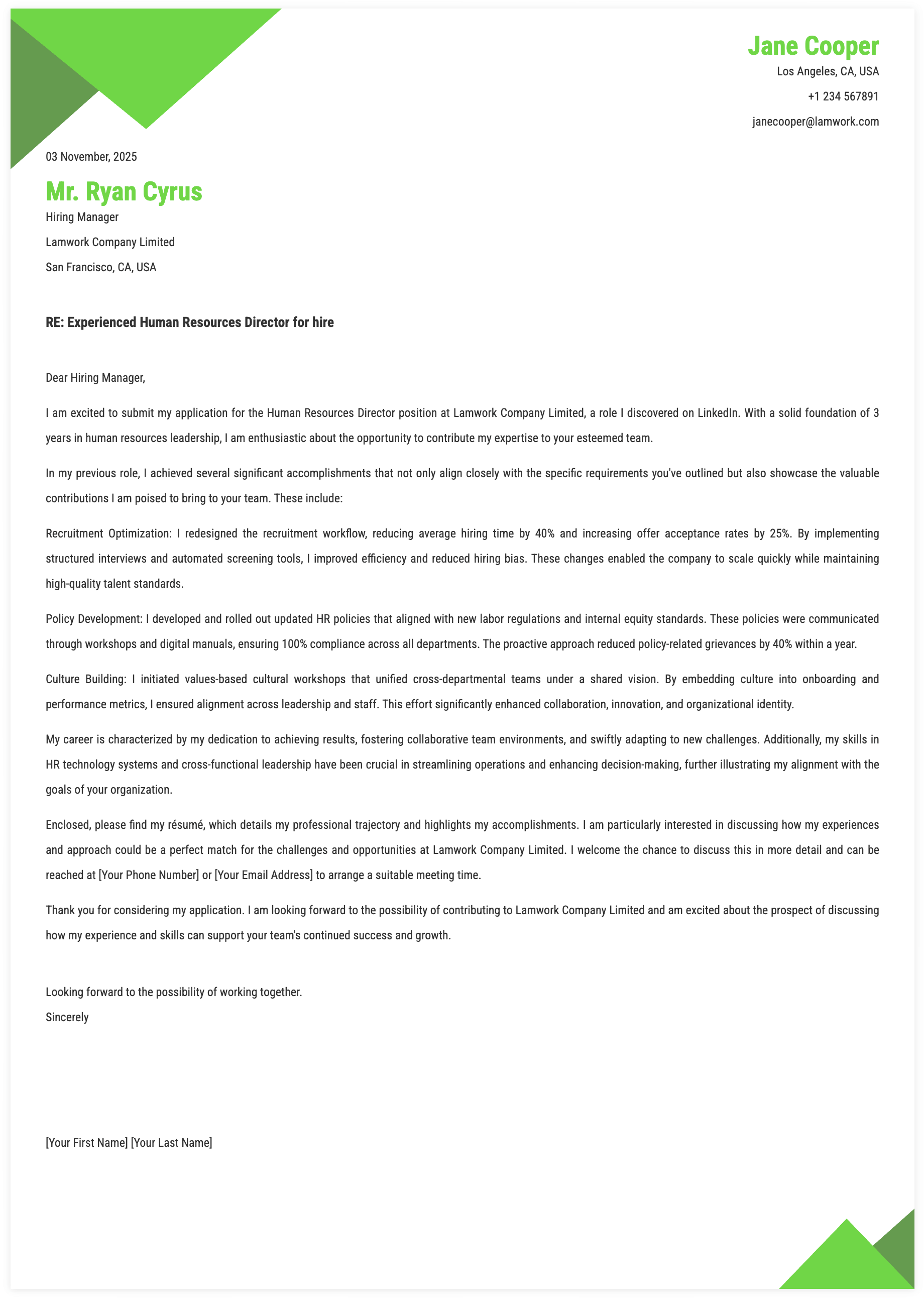 1. Details for Human Resources Director Cover Letter