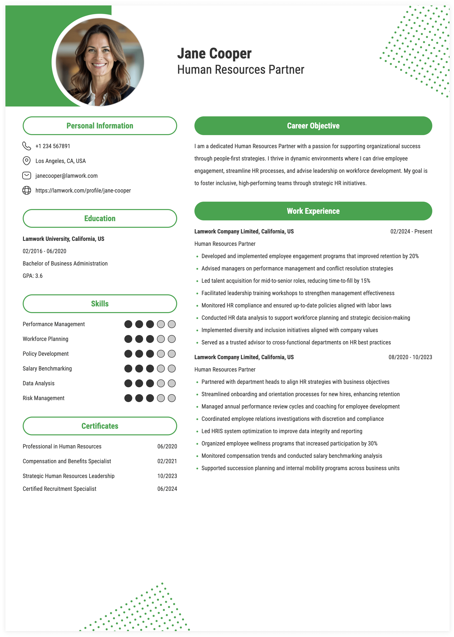 - Use knowledge of human resources, legal and regulatory requirements in conjunction with market best practices to ensure business unit compliance and competitiveness