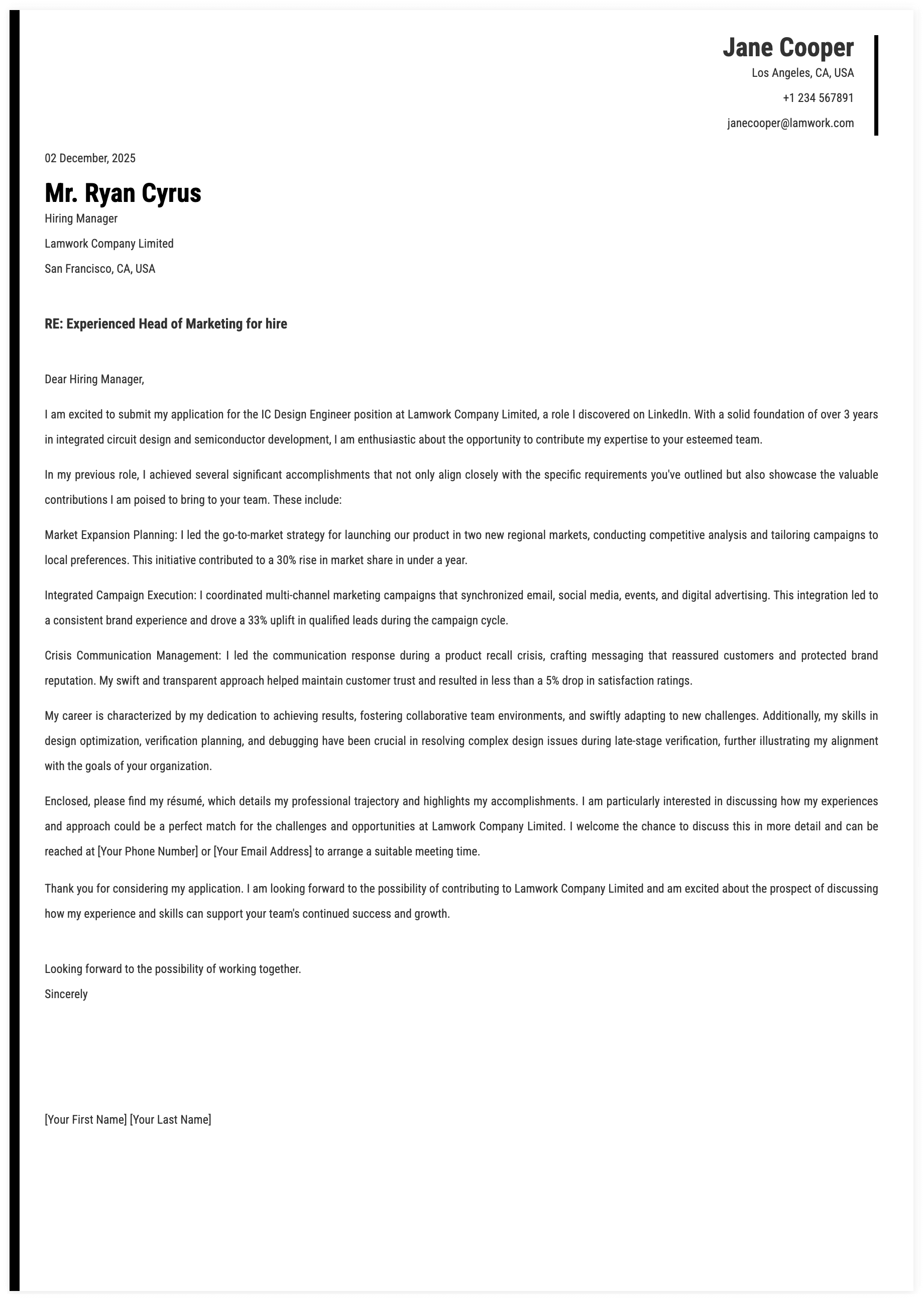 1. Details for IC Design Engineer Cover Letter