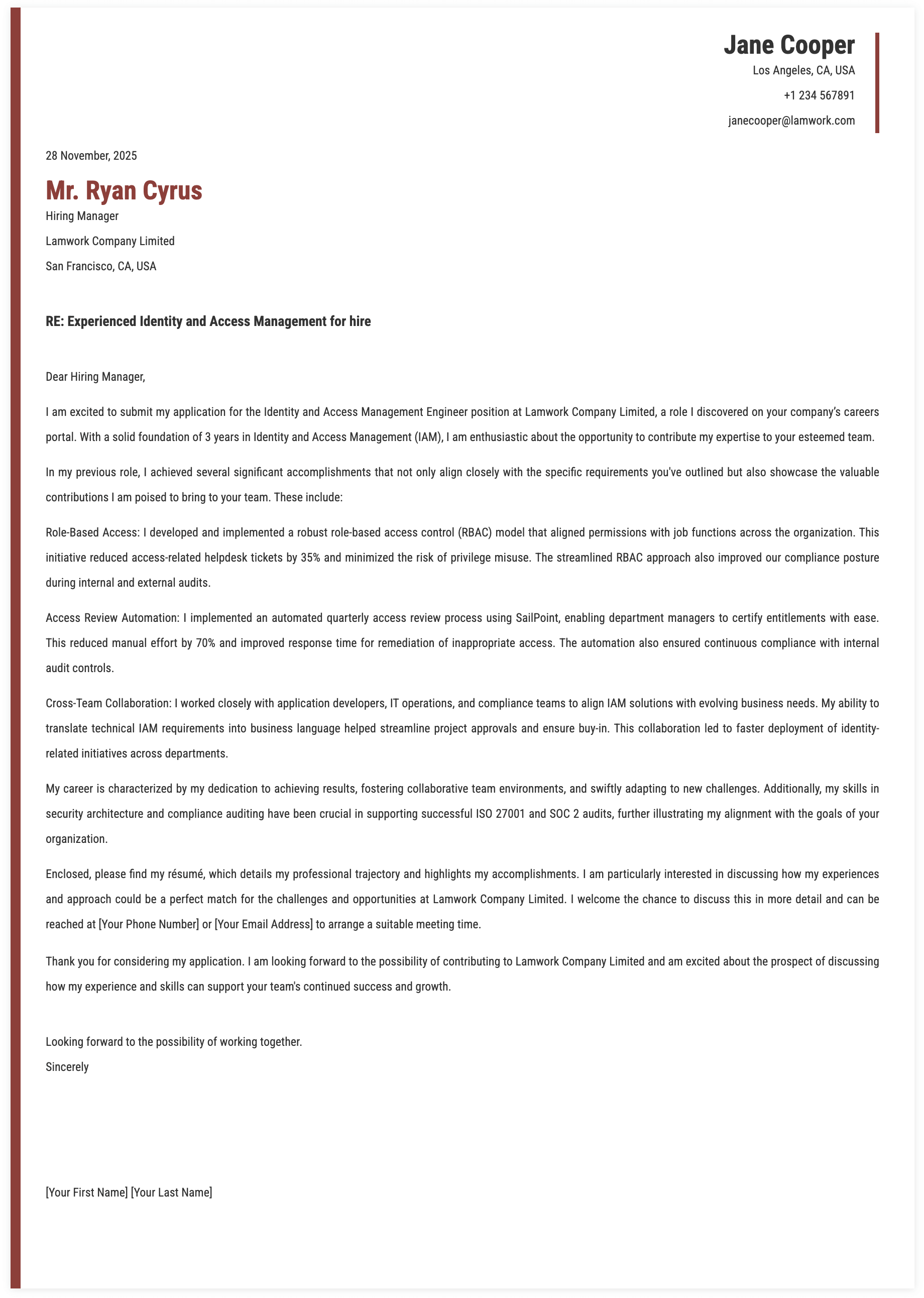 6. Roles for Identity and Access Management Engineer Cover Letter
