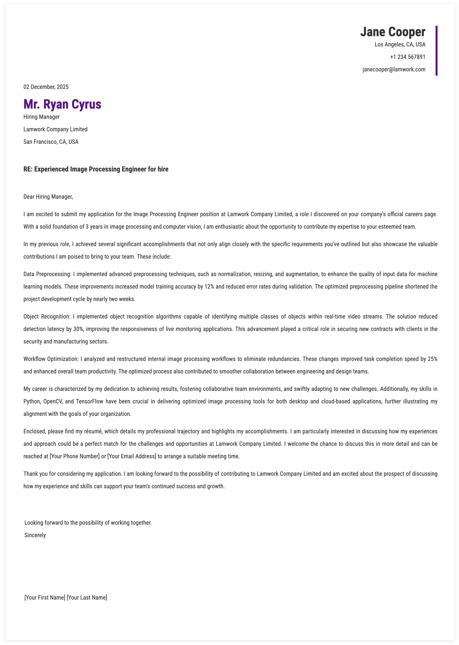 8. Experience and Requirements for Image Processing Engineer Cover Letter