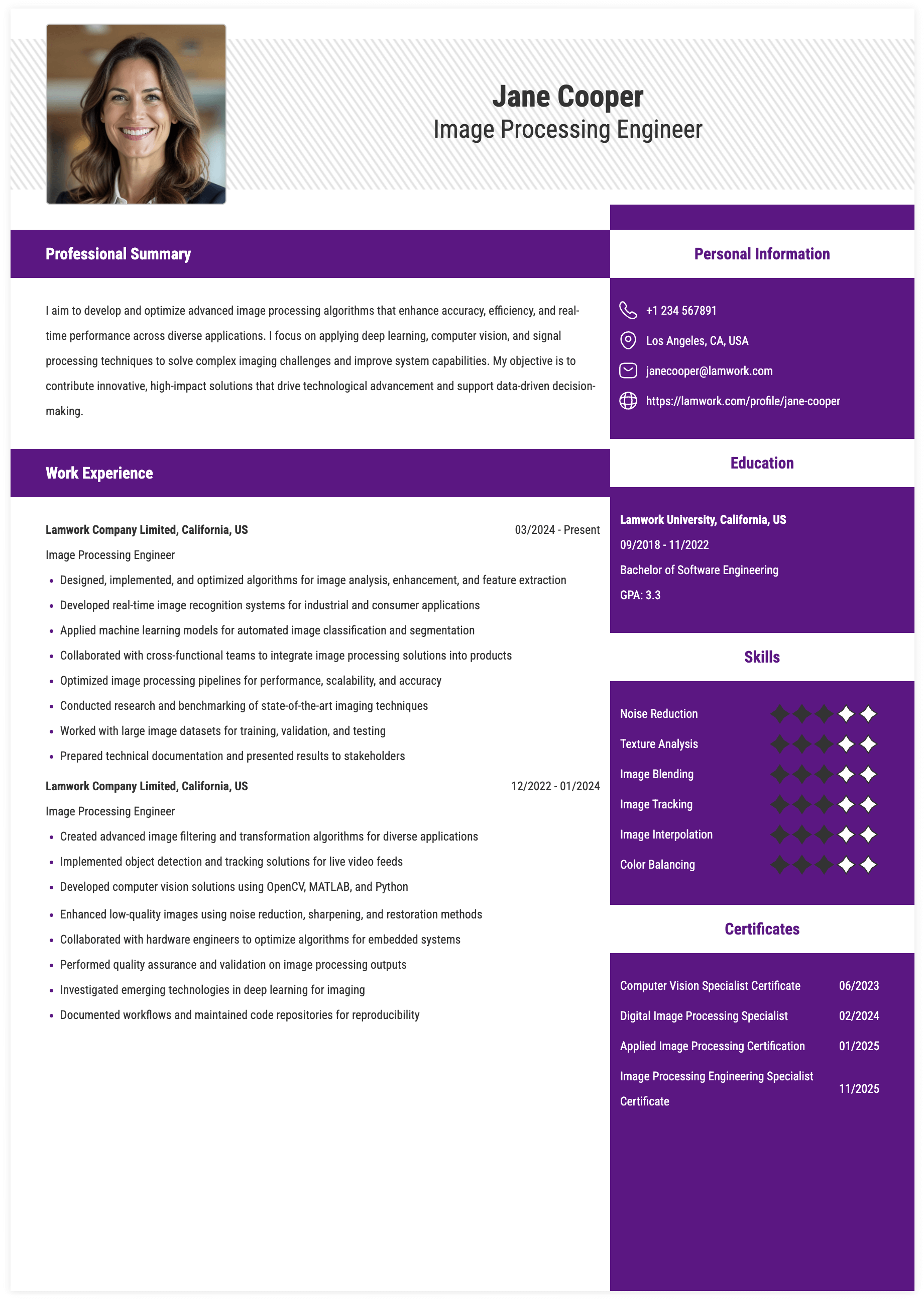 5. Image Processing Engineer, QuantumSight Analytics, Tallahassee, FL