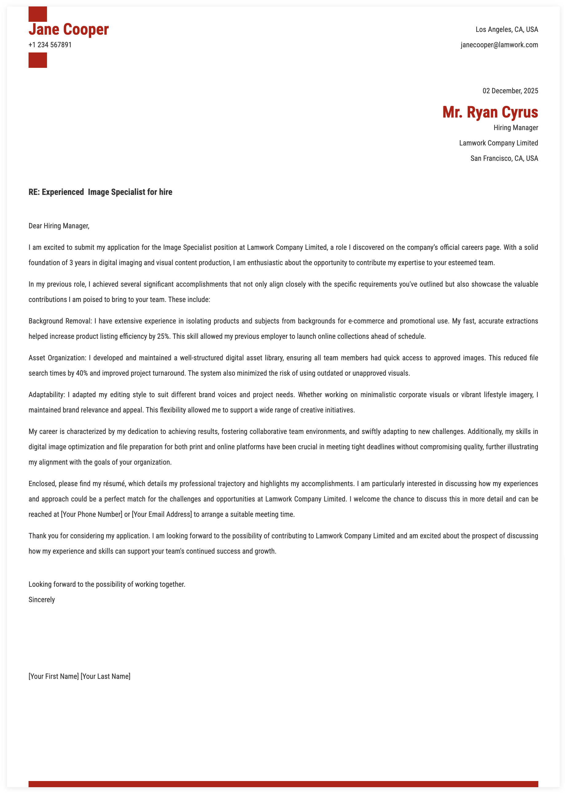 An Introduction to Professional Skills and Functions for Image Specialist with a Cover Letter