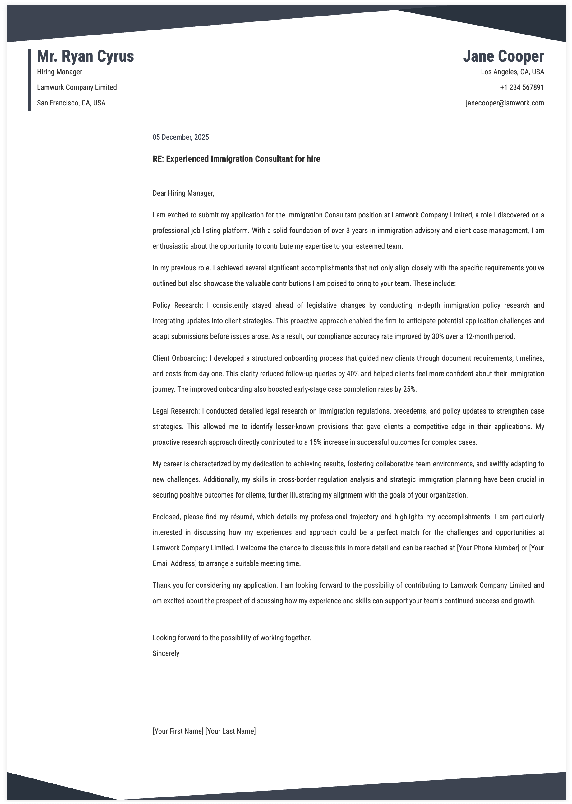 7. Expectations for Immigration Consultant Cover Letter