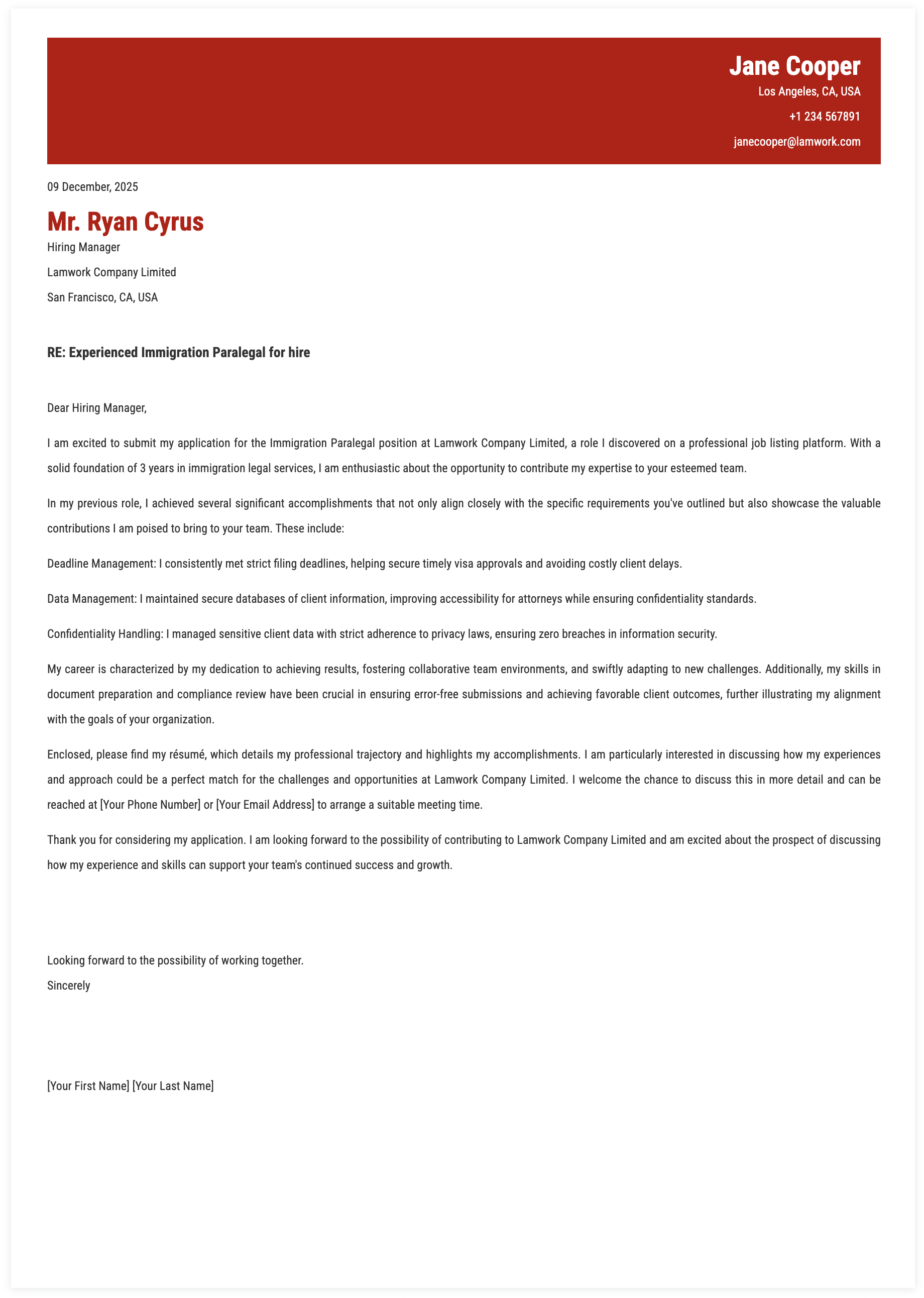 8. Key Deliverables for Sr. Immigration Paralegal Cover Letter