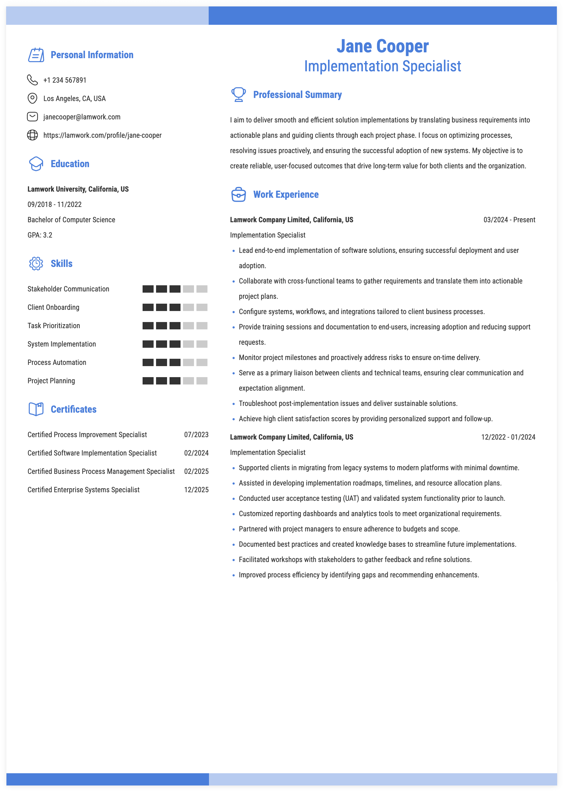 Tips for Implementation Specialist Skills and Responsibilities on a Resume