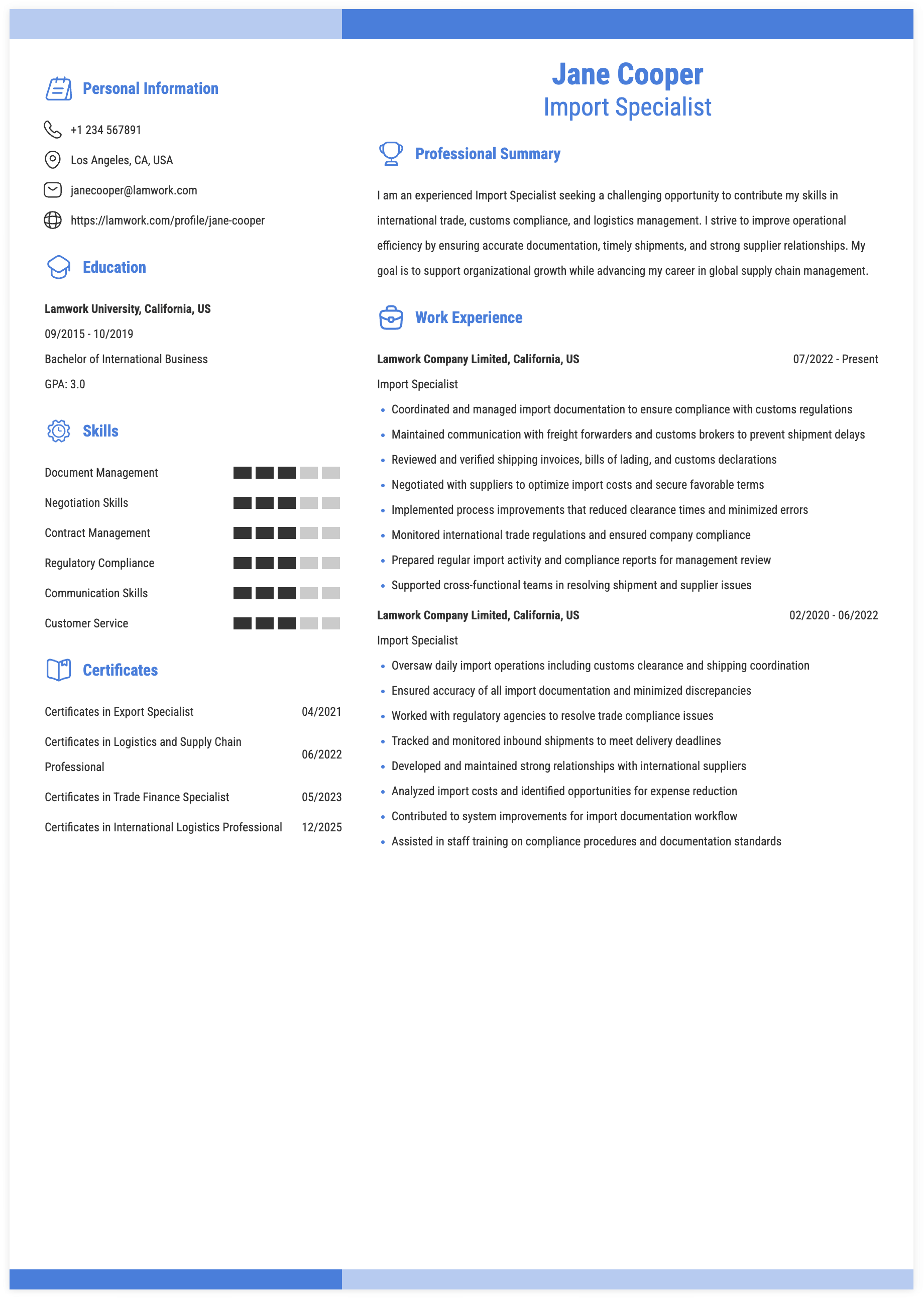 Tips for Import Specialist Skills and Responsibilities on a Resume