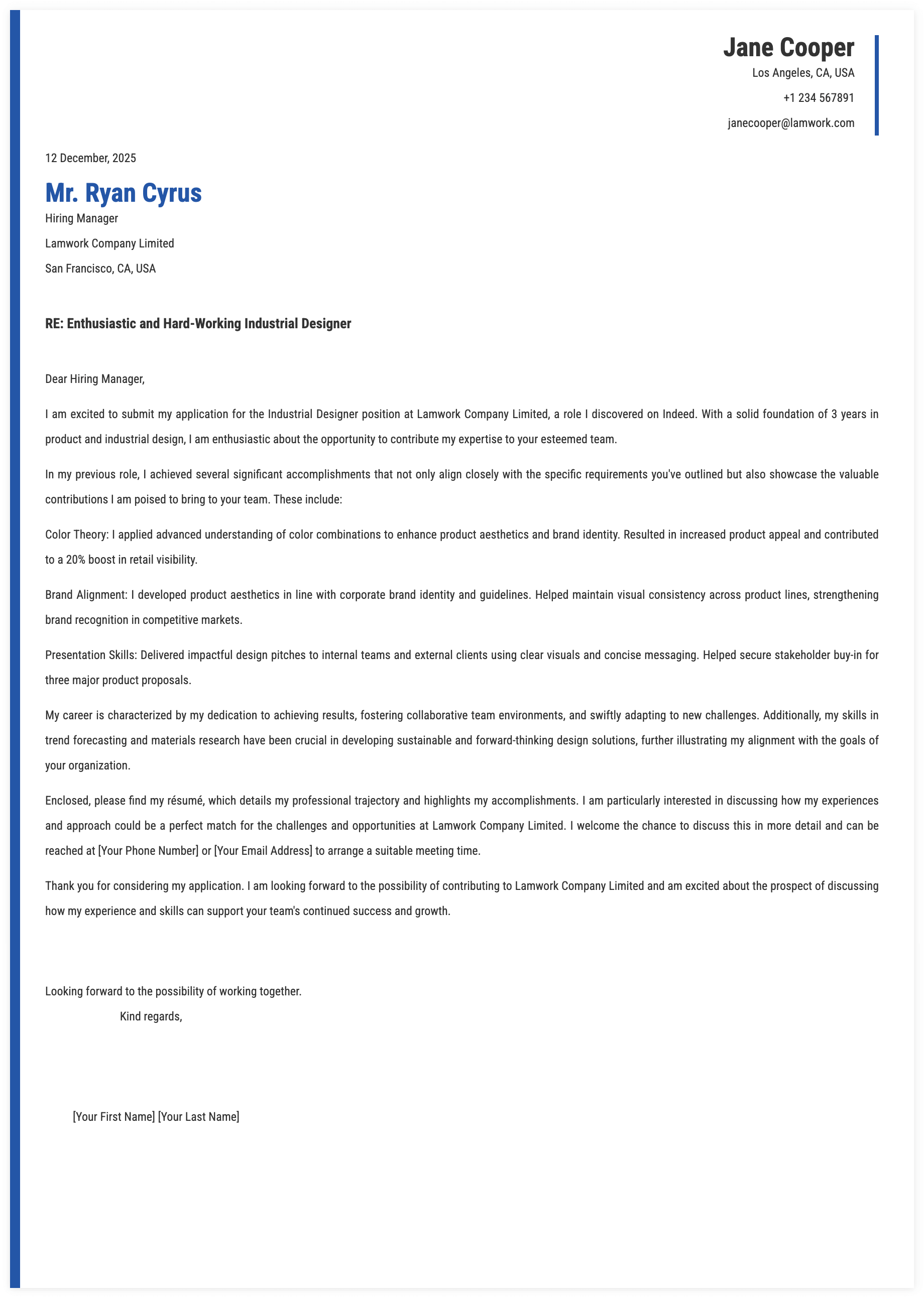 39. Experience and Qualifications for Industrial Designer Cover Letter