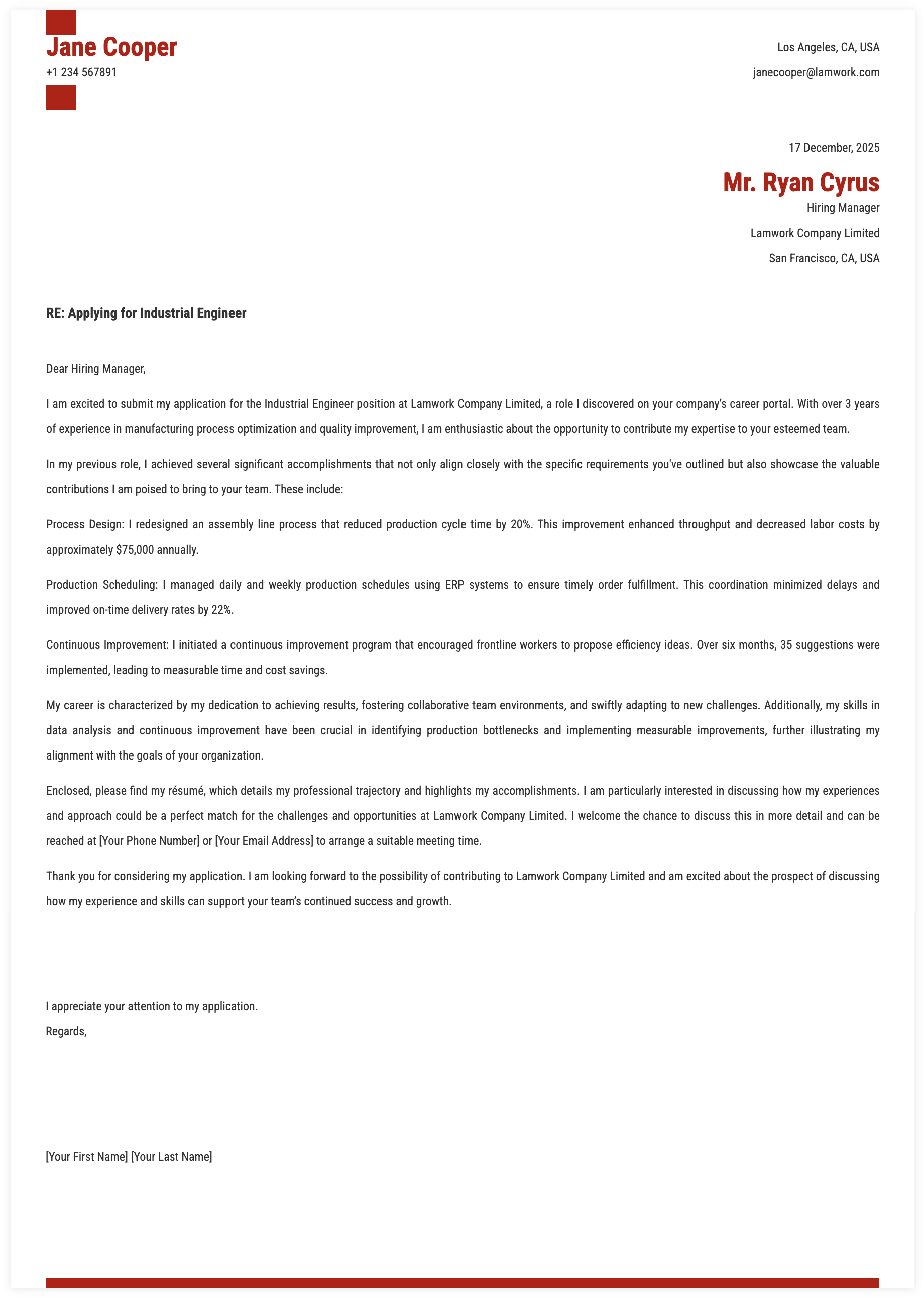 30. Experience and Requirements for Industrial Engineer Cover Letter