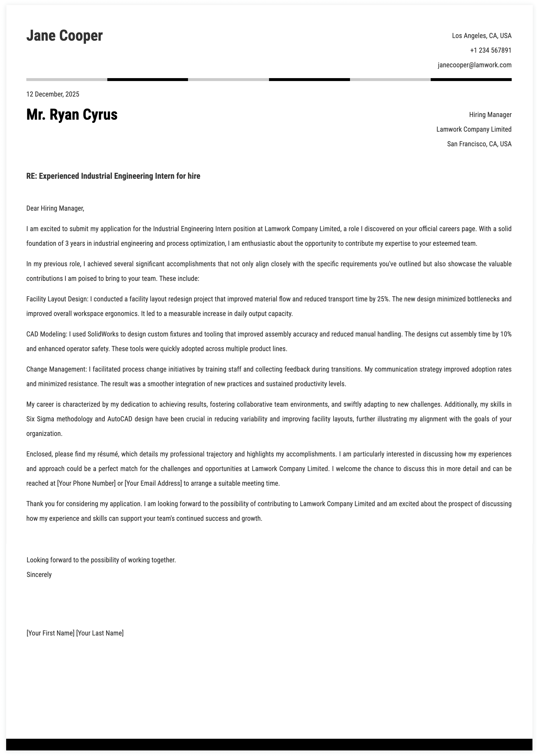 1. Details for Industrial Engineering Intern Cover Letter