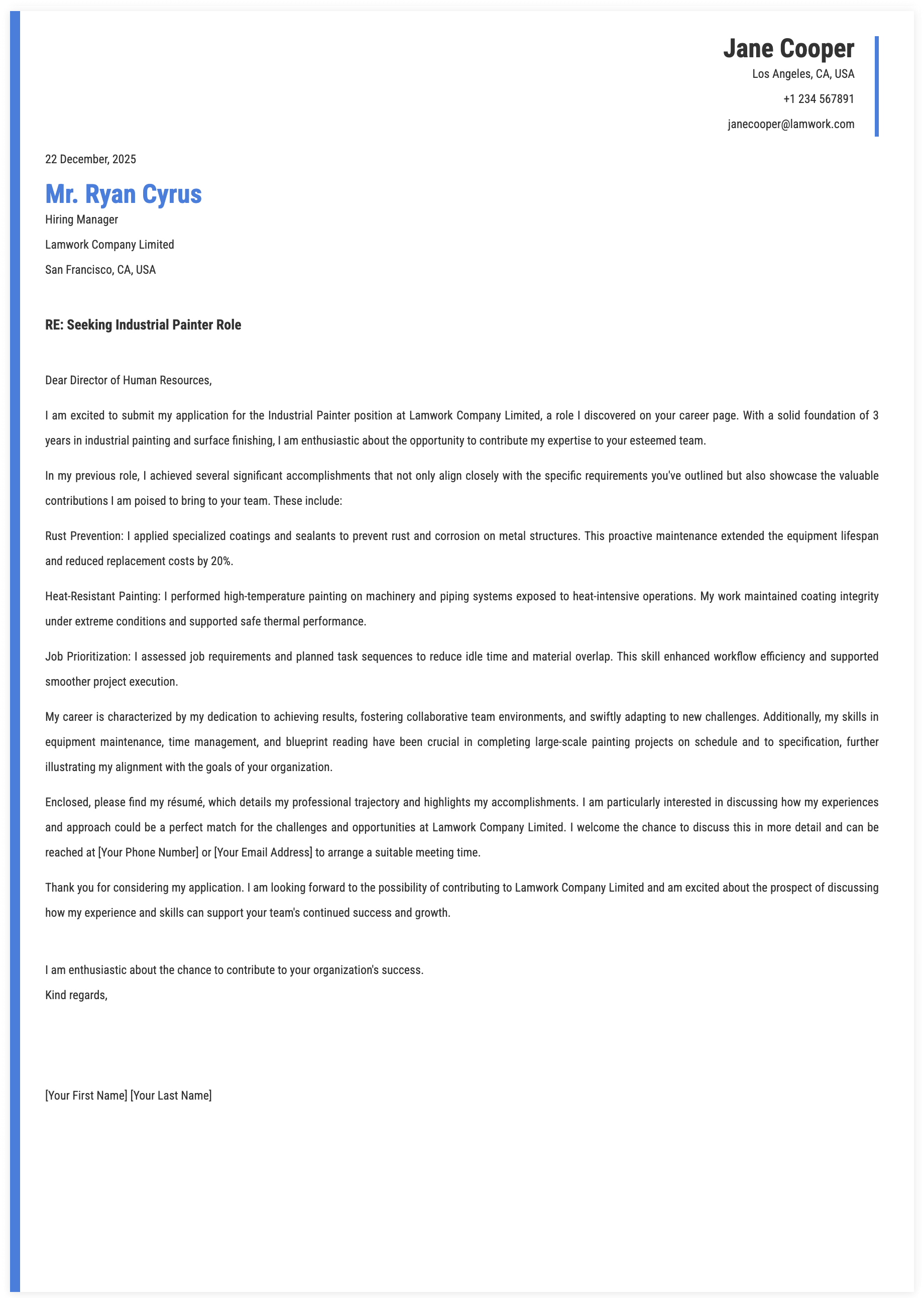 What Are the Qualifications and Requirements for Industrial Painter in a Cover Letter?