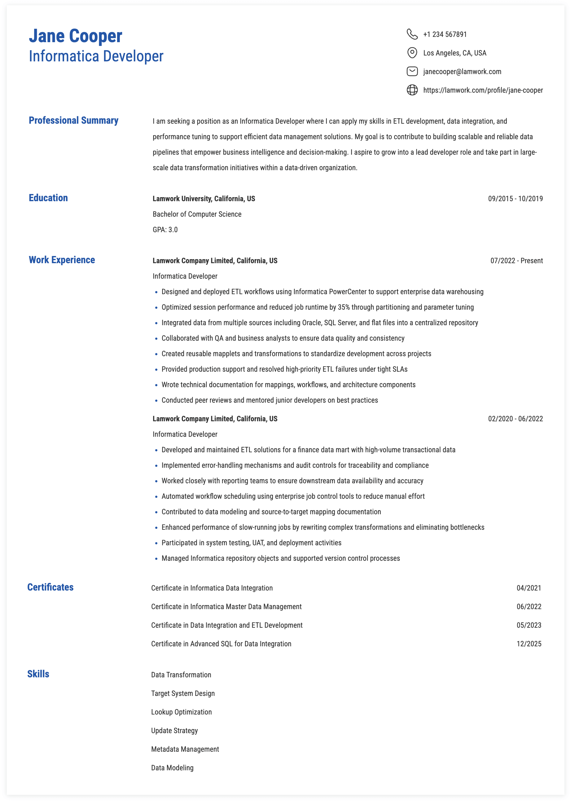 INFORMATICA DEVELOPER RESUME EXAMPLE