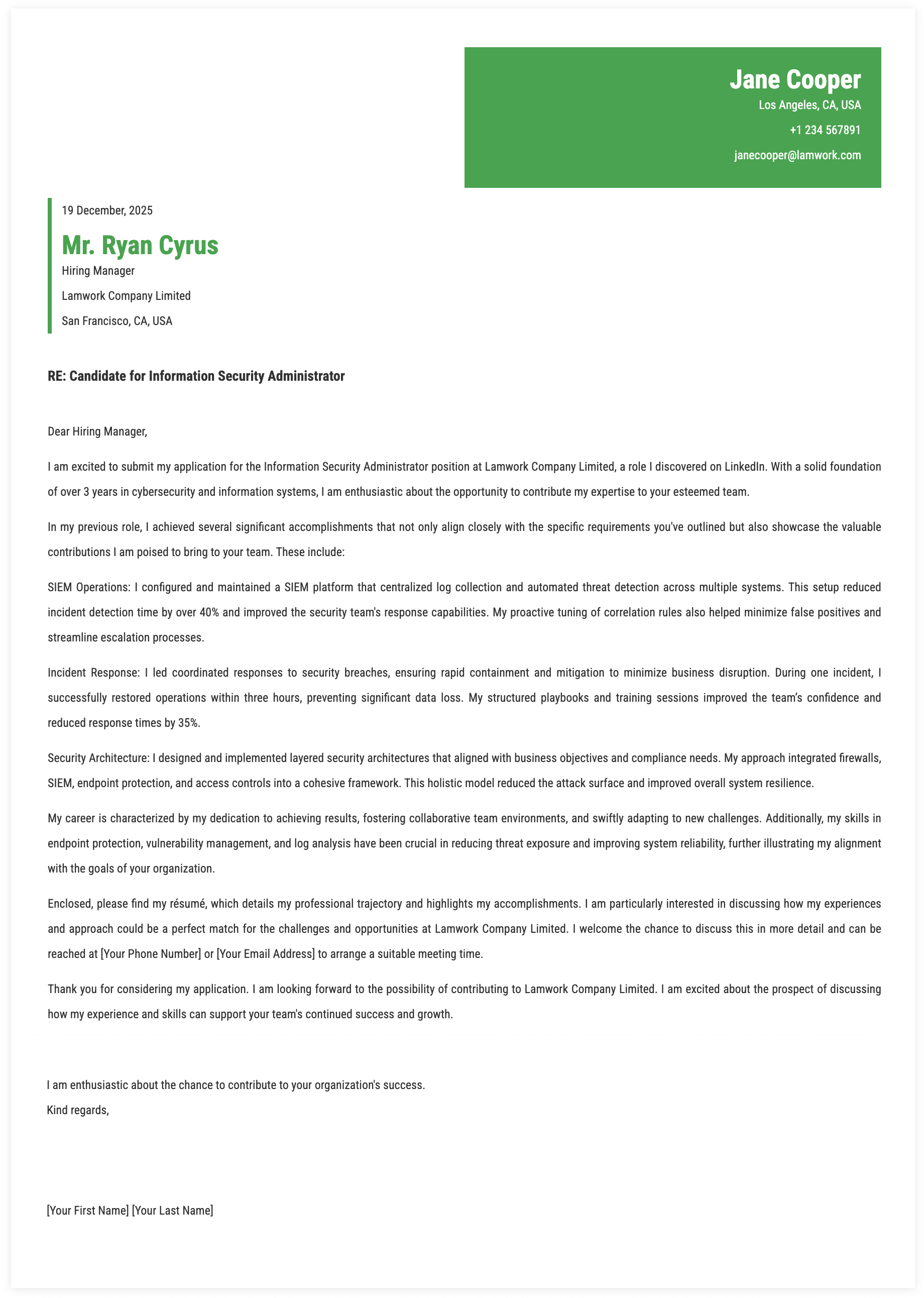 1. Details for Information Security Administrator Cover Letter