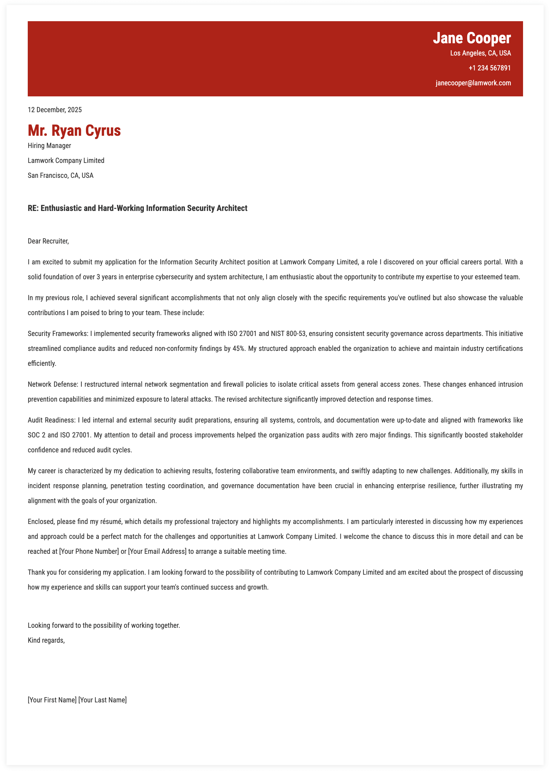 24. Education and Experience for Senior Information Security Architect Cover Letter