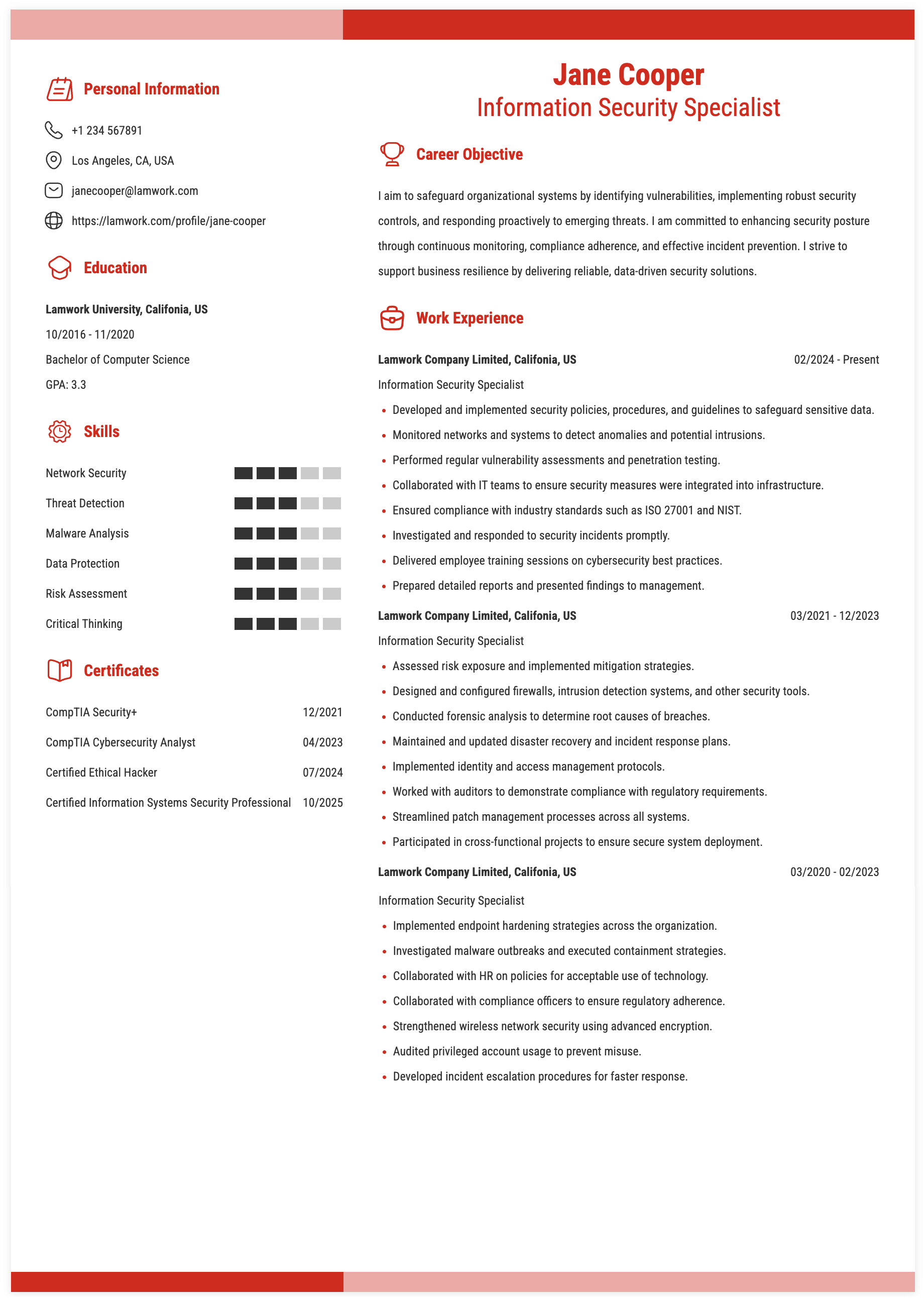 1. Information Security Specialist, CyberFort Solutions, Austin, TX