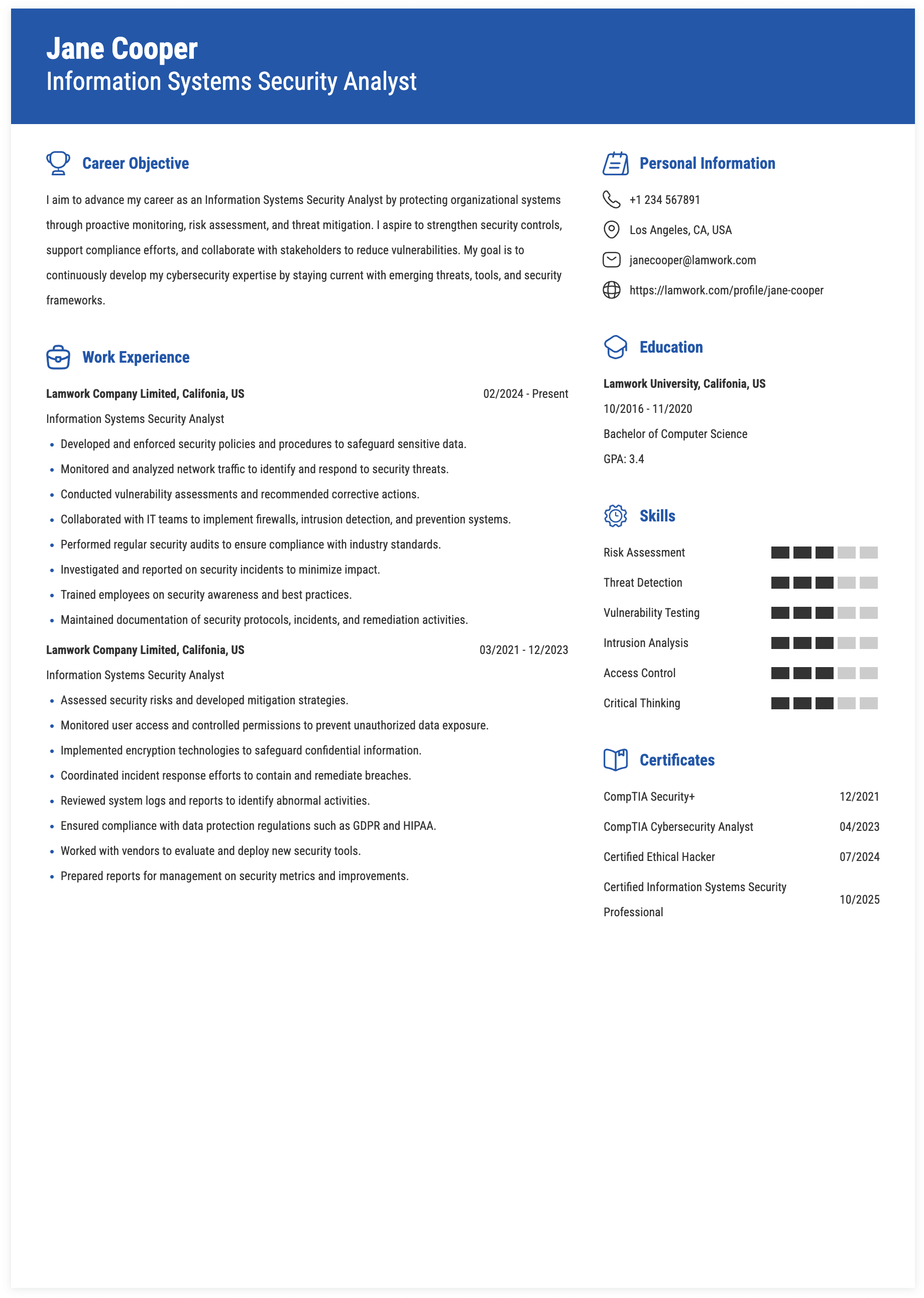 - Information System Security (Hard Skills)