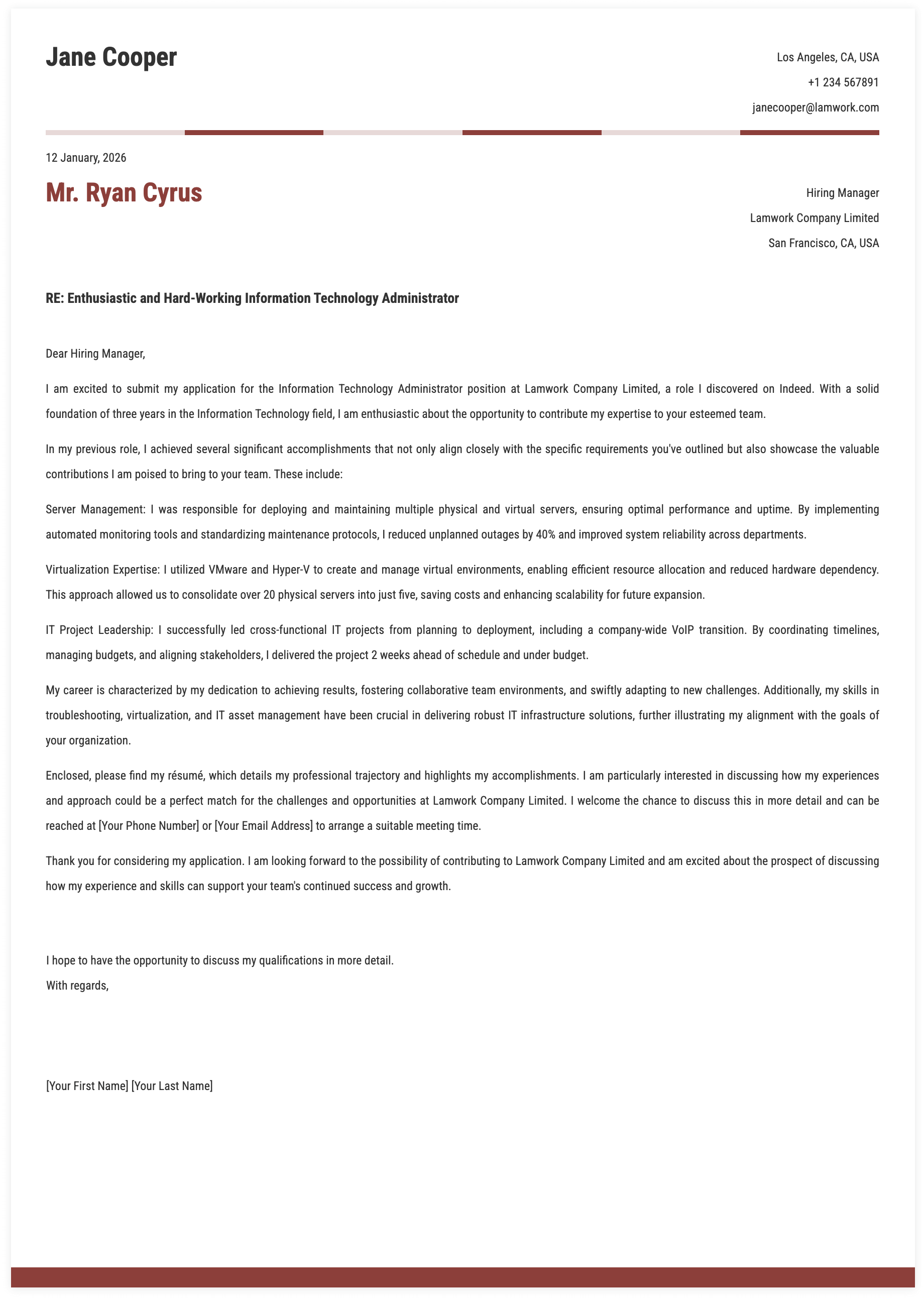 7. Requirements and Experience for Information Technology Administrator Cover Letter