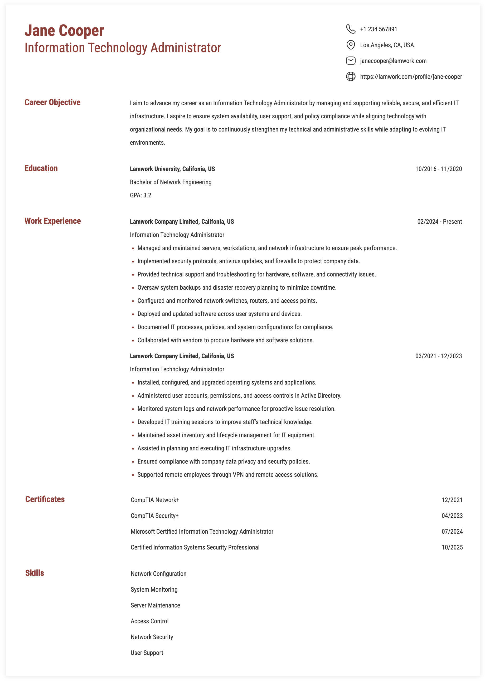 1. Information Technology Administrator, Silverline Tech Systems, Albany, NY