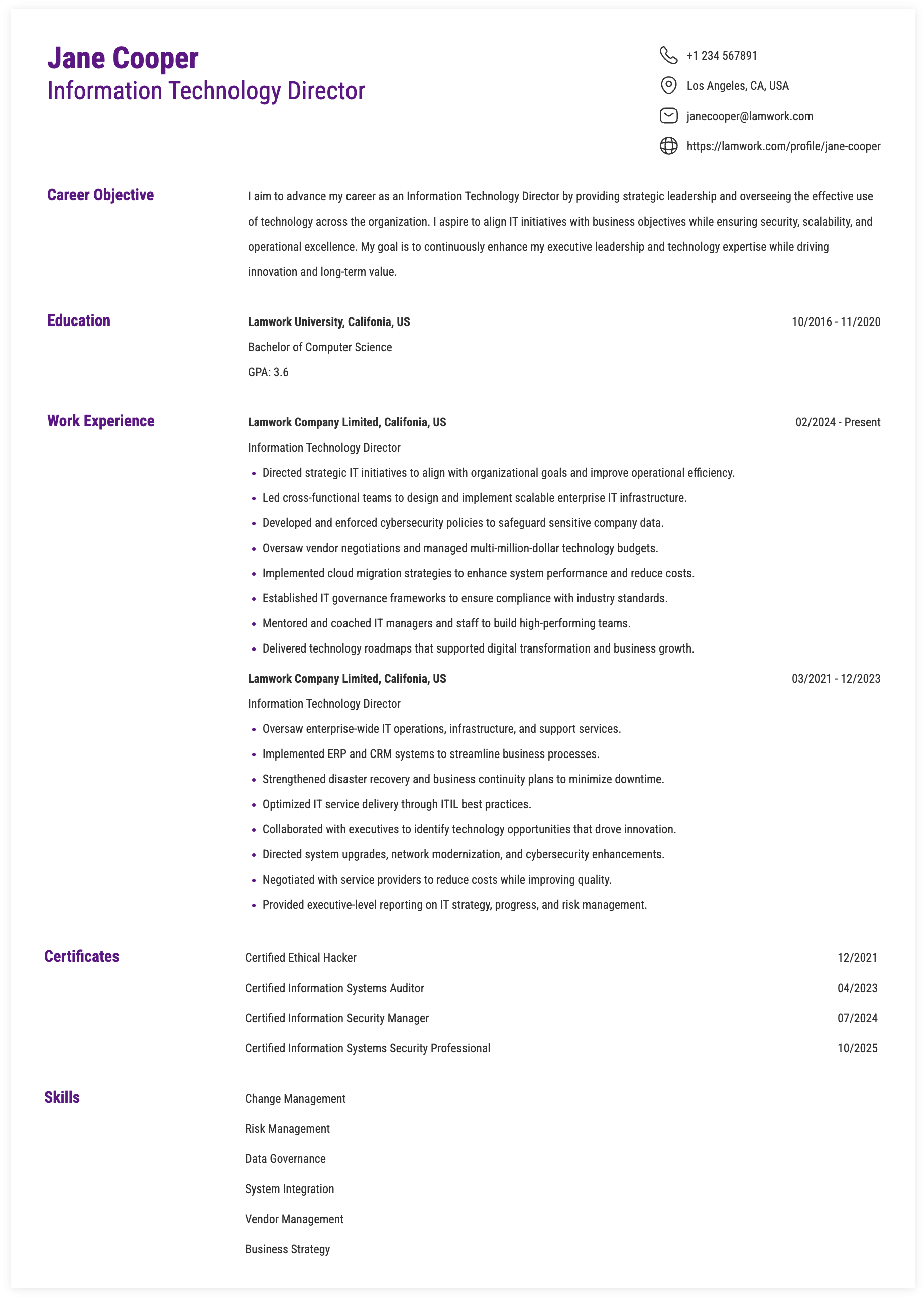 Tips for Information Technology Director Skills and Responsibilities on a Resume
