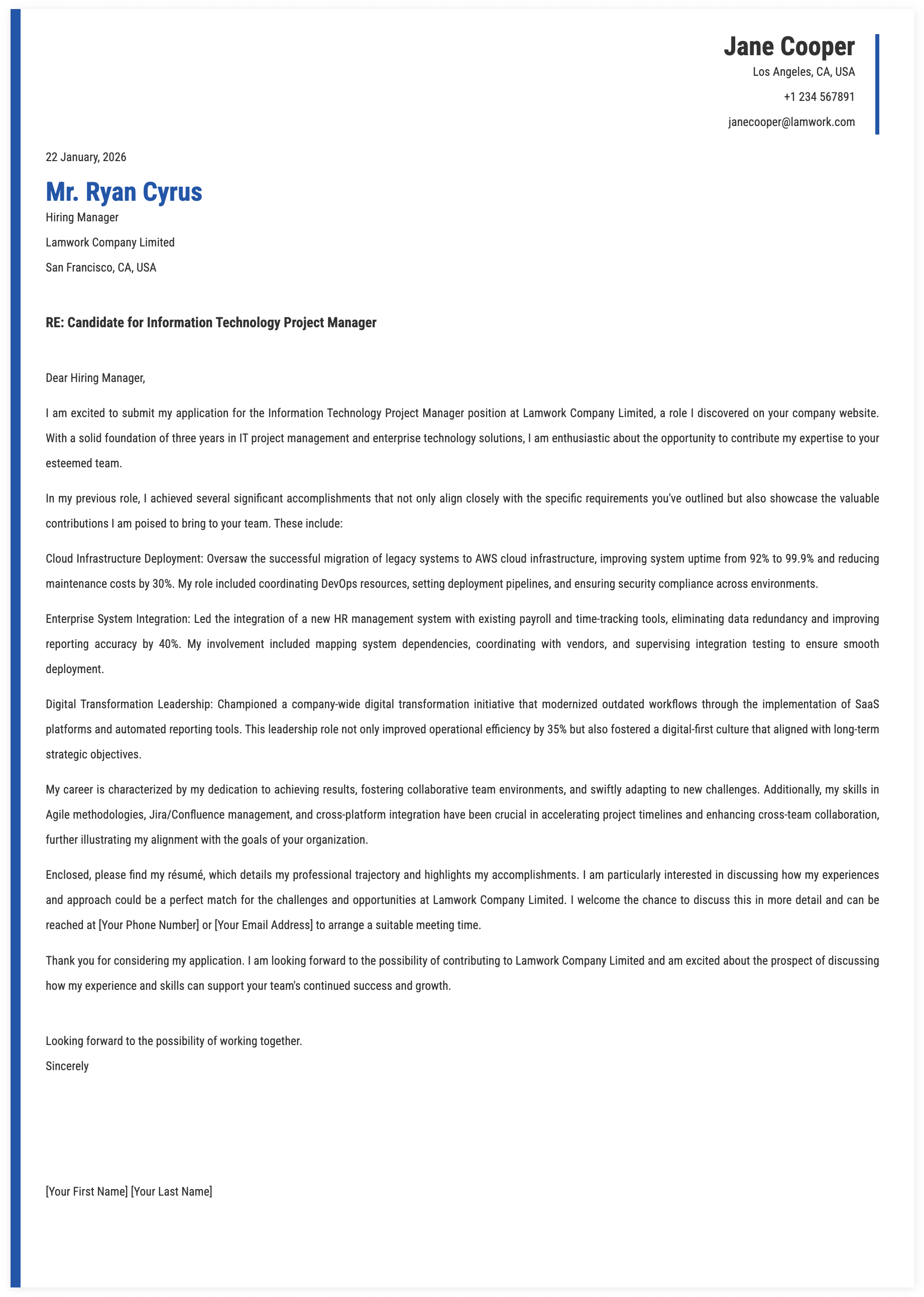 20. Key Achievements for Information Technology Project Manager Cover Letter