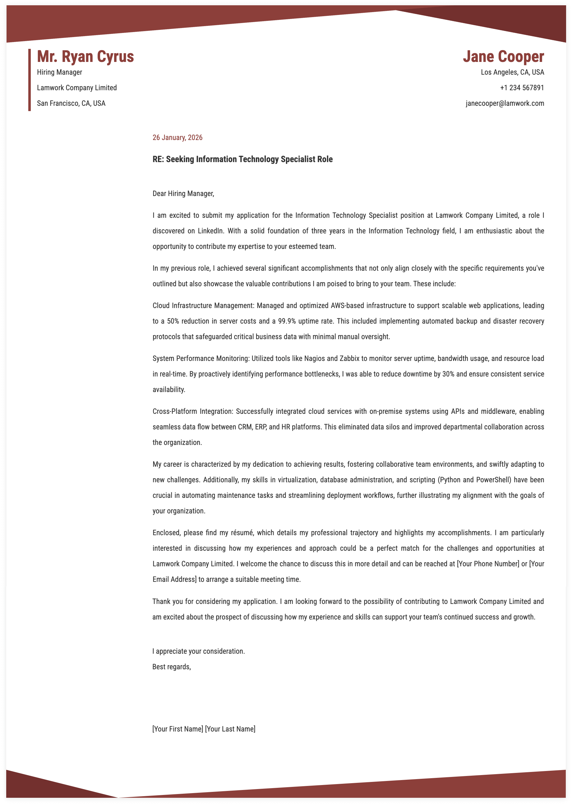 1. Accountabilities for Information Technology Specialist Cover Letter