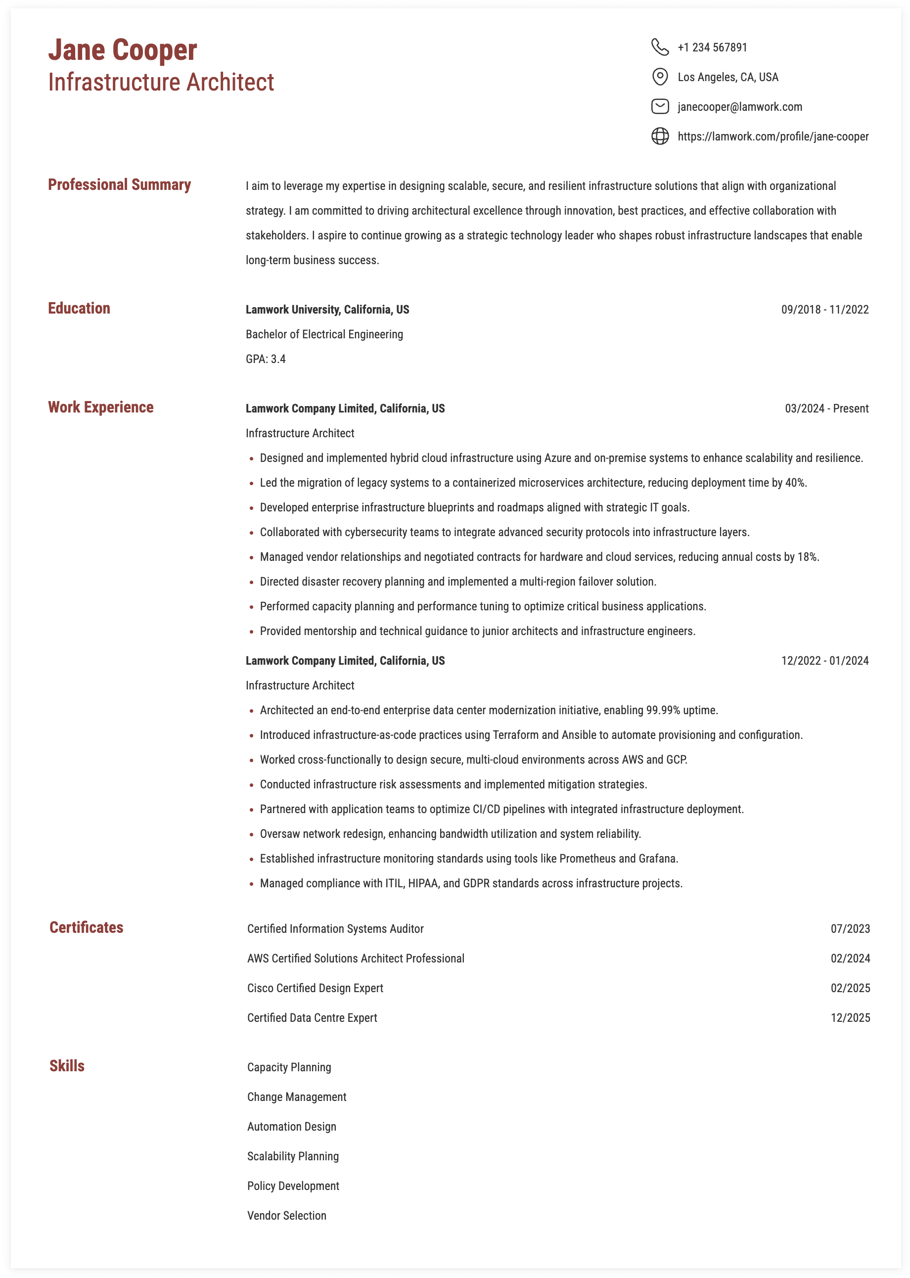 Tips for Infrastructure Architect Skills and Responsibilities on a Resume