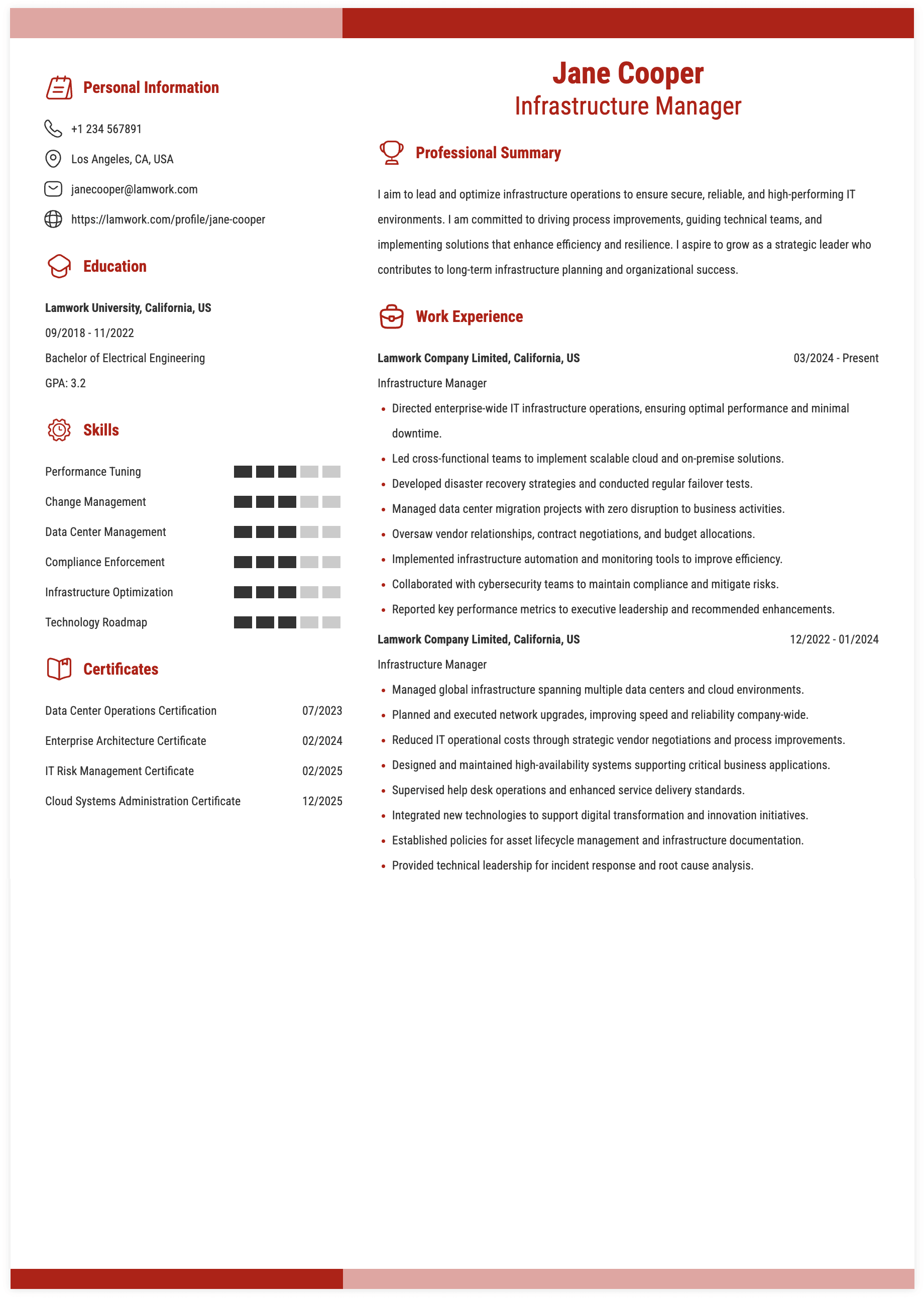 Tips for Infrastructure Manager Skills and Responsibilities on a Resume