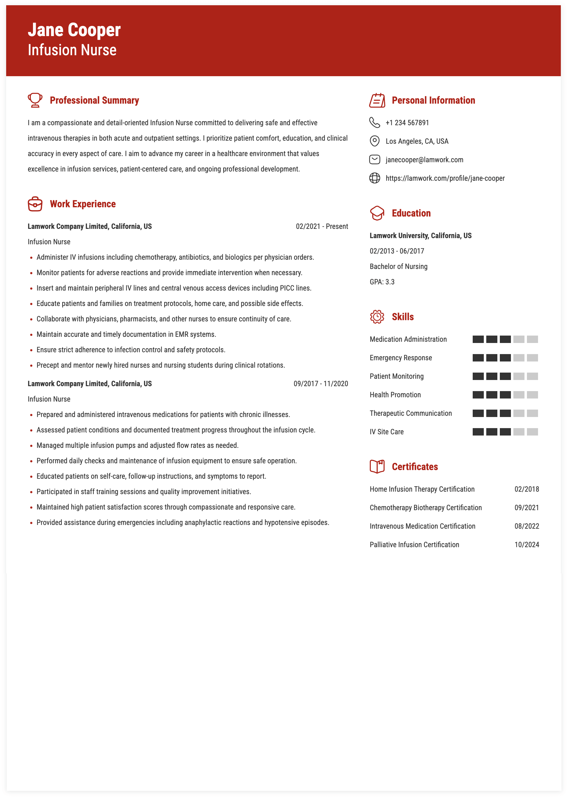 Tips for Infusion Nurse Skills and Responsibilities on a Resume