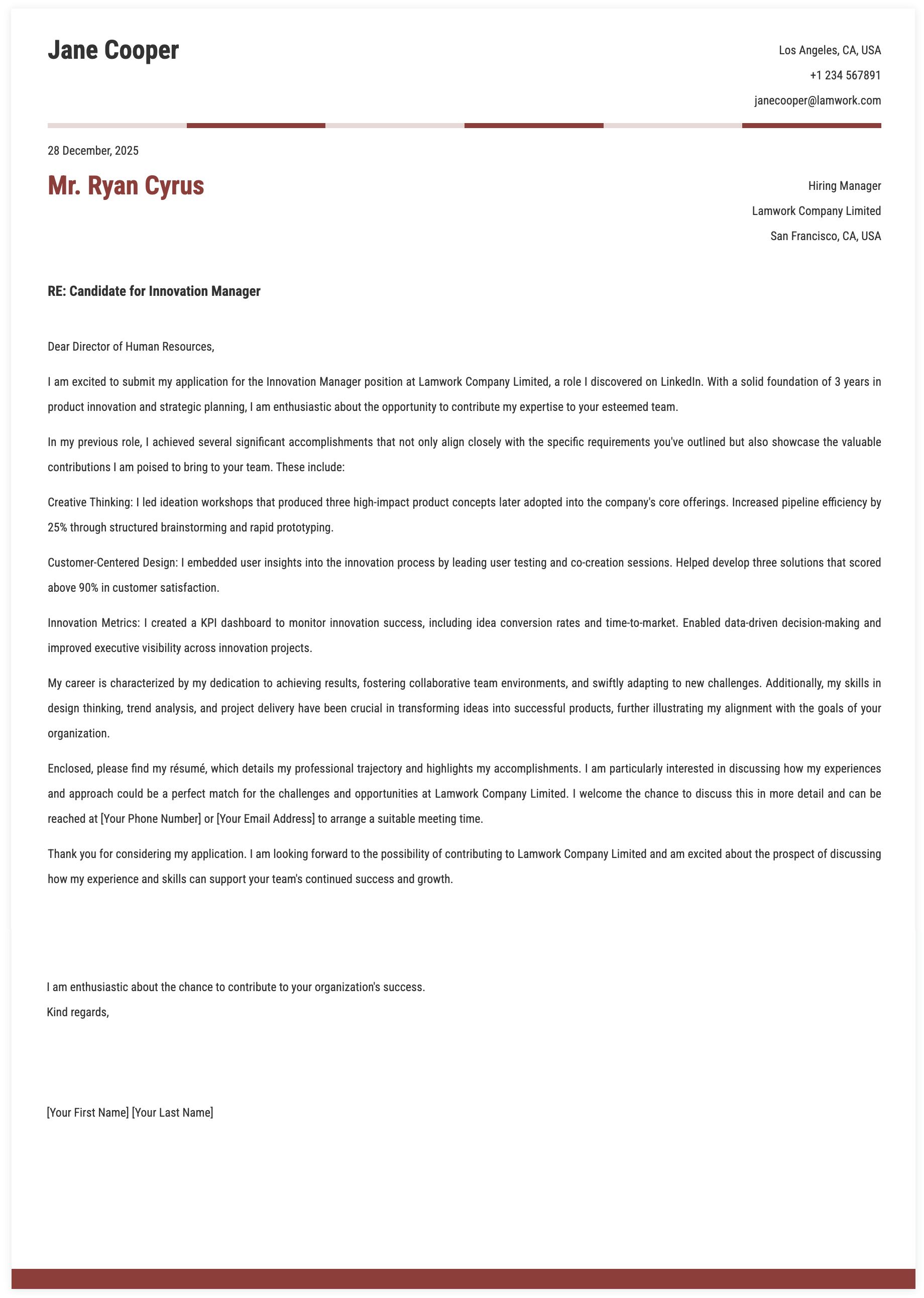 20. Collaborative Teamwork for Innovation Manager Cover Letter