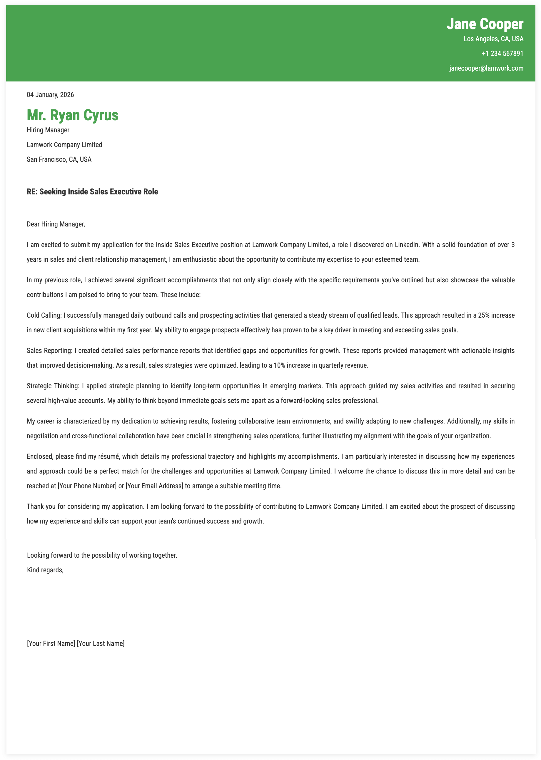 An Introduction to Professional Skills and Functions for Inside Sales Executive with a Cover Letter