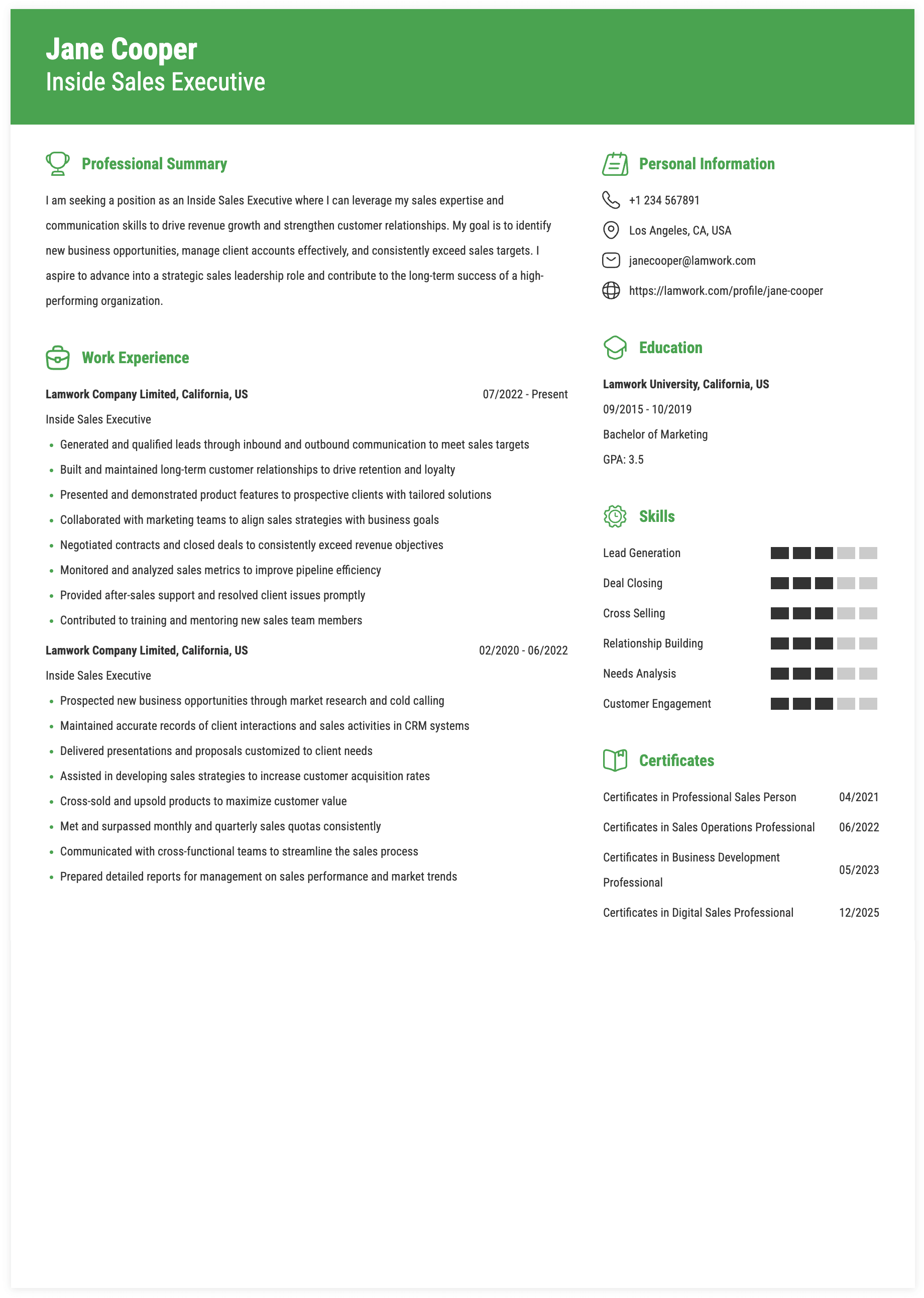 - Source new sales opportunities through inbound lead follow-up
