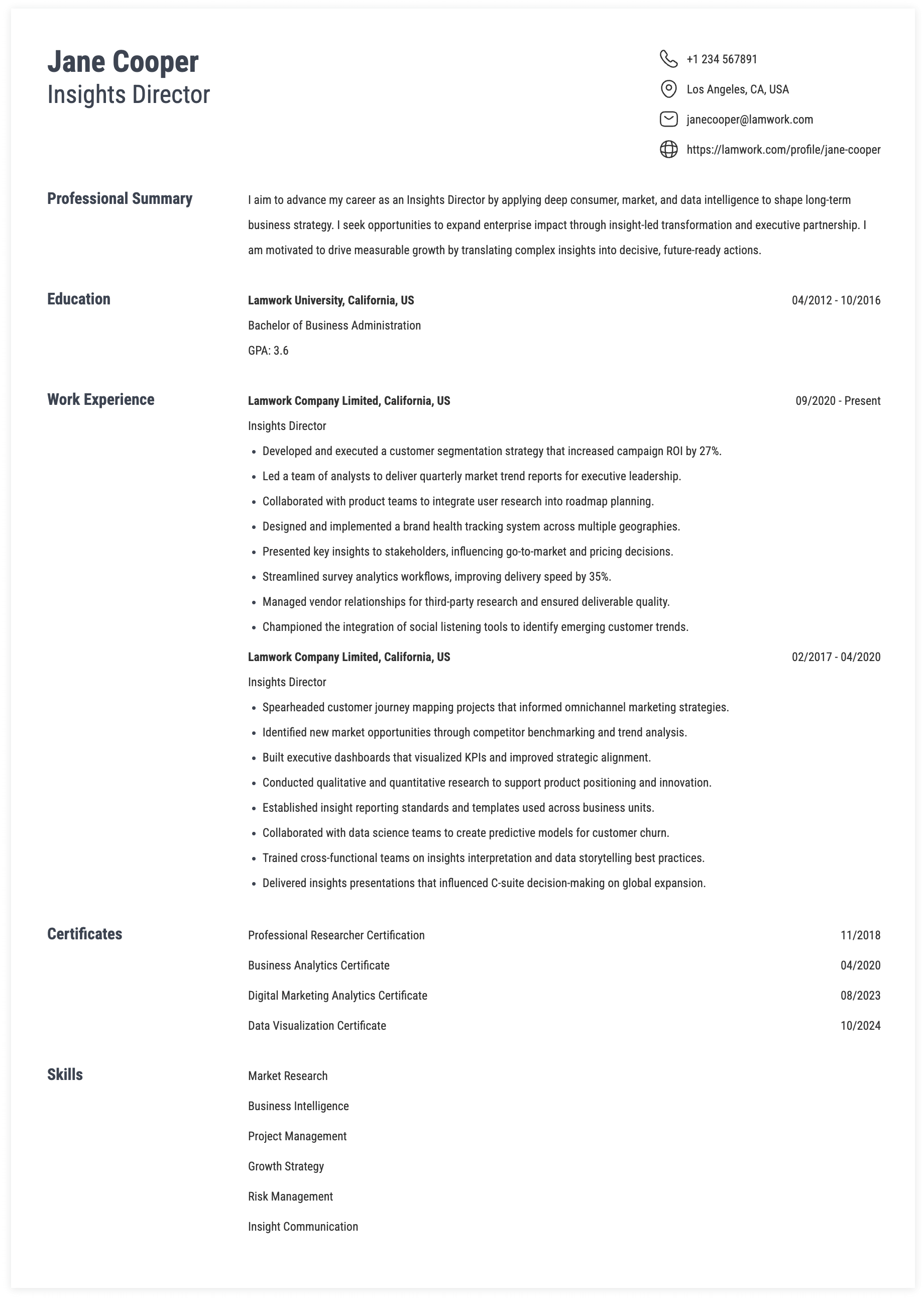 Tips for Insights Director Skills and Responsibilities on a Resume