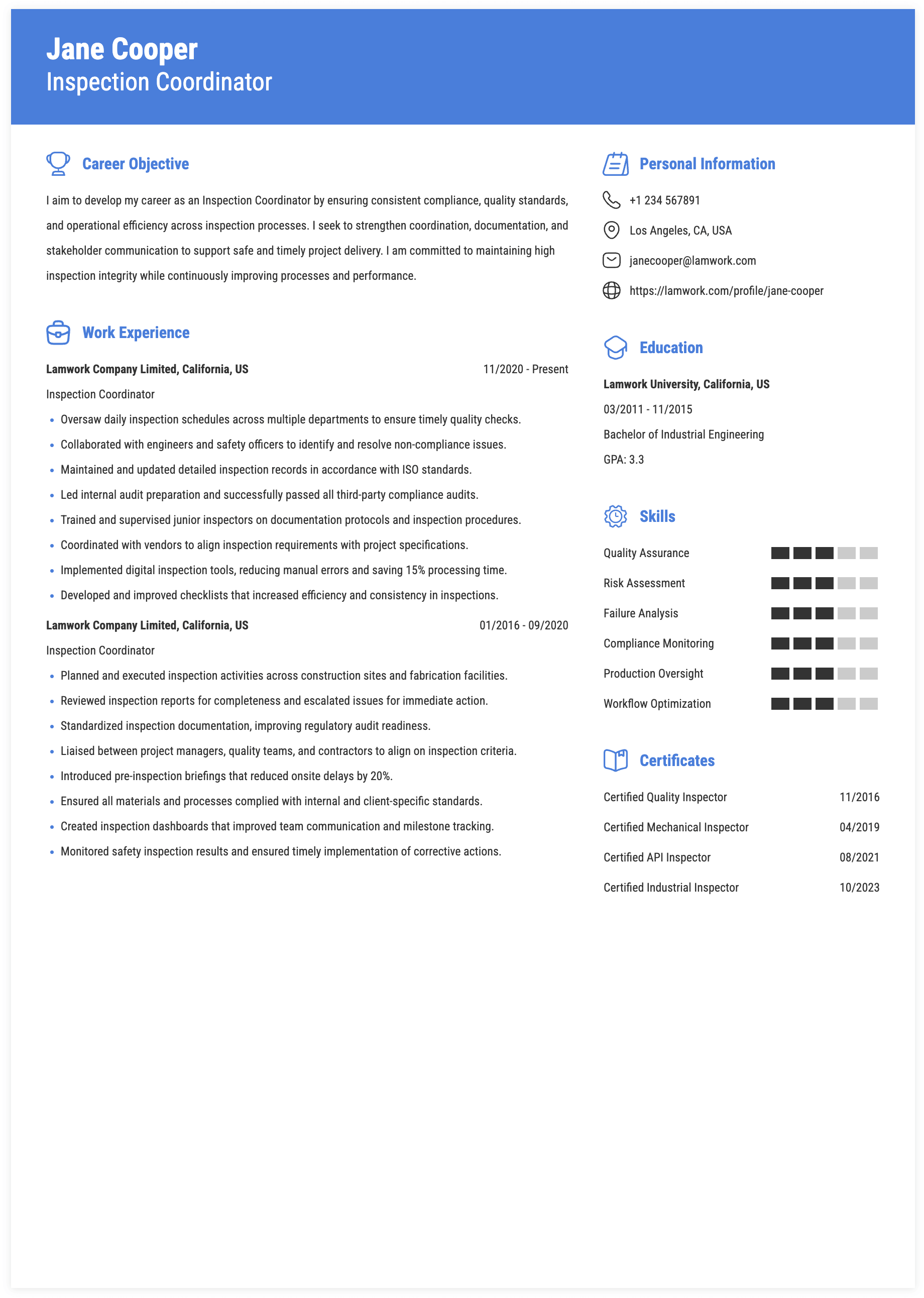 Tips for Inspection Coordinator Skills and Responsibilities on a Resume