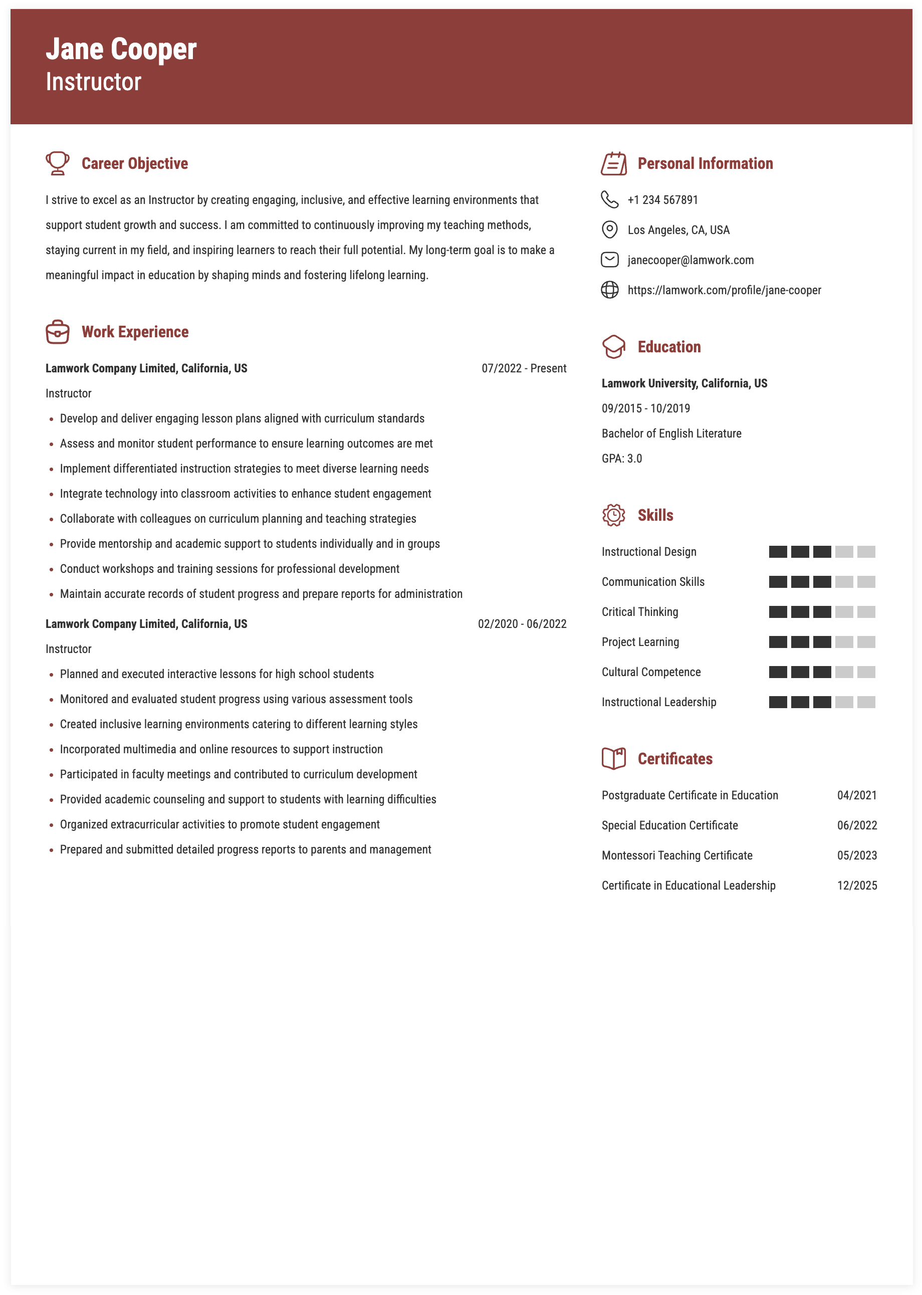 Tips for Instructor Skills and Responsibilities on a Resume