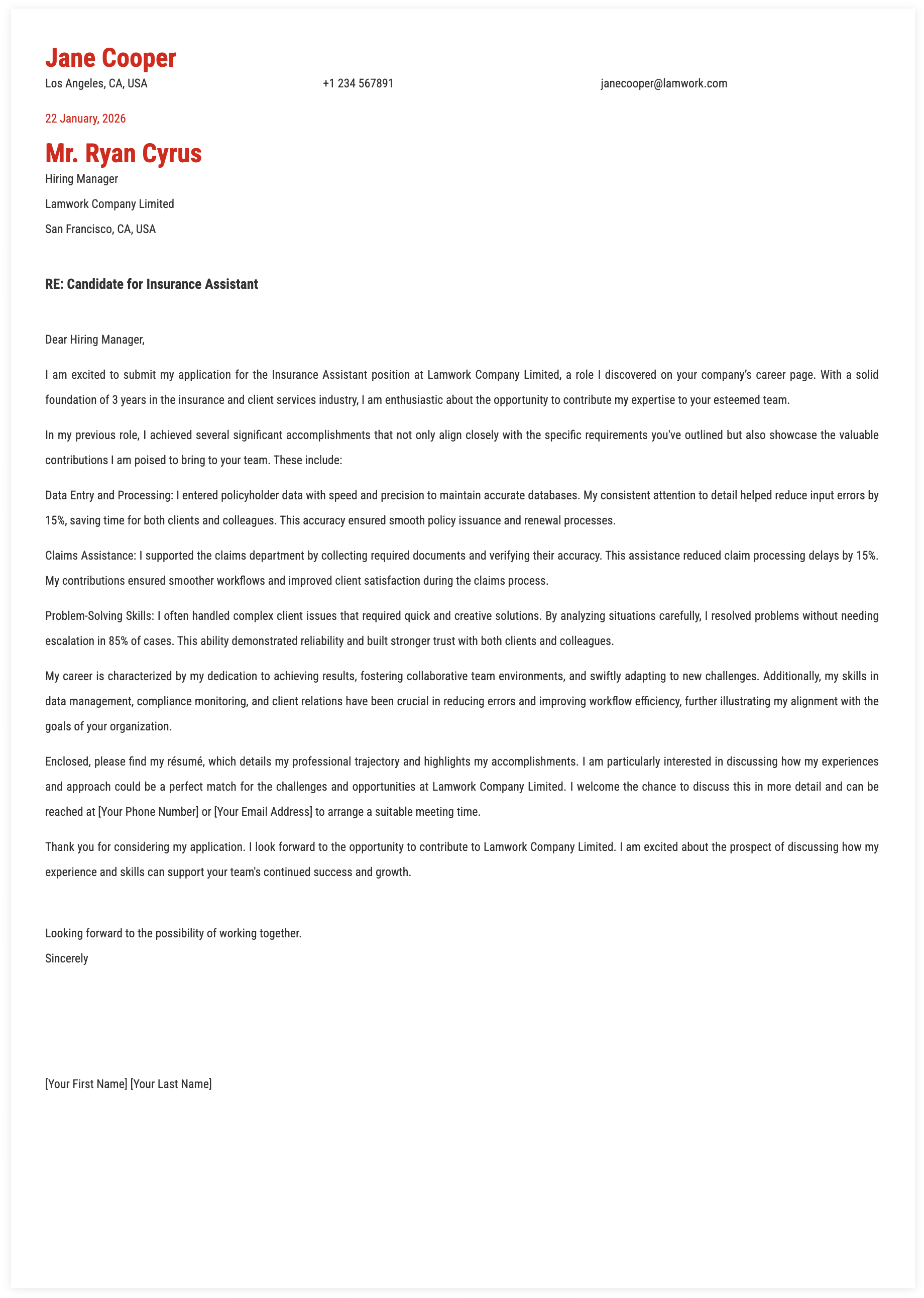 2. Requirements and Experience for Insurance Assistant Cover Letter