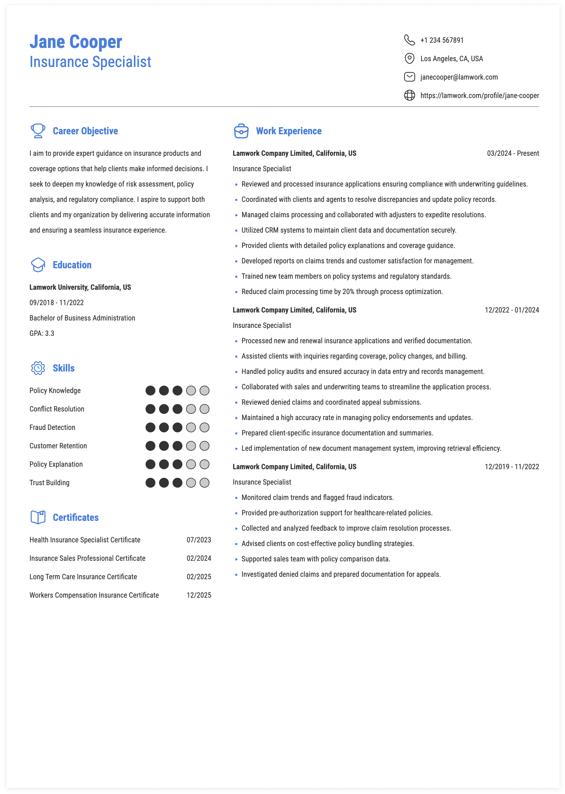 4. Insurance Specialist, Apex Assurance Group, Columbus, OH