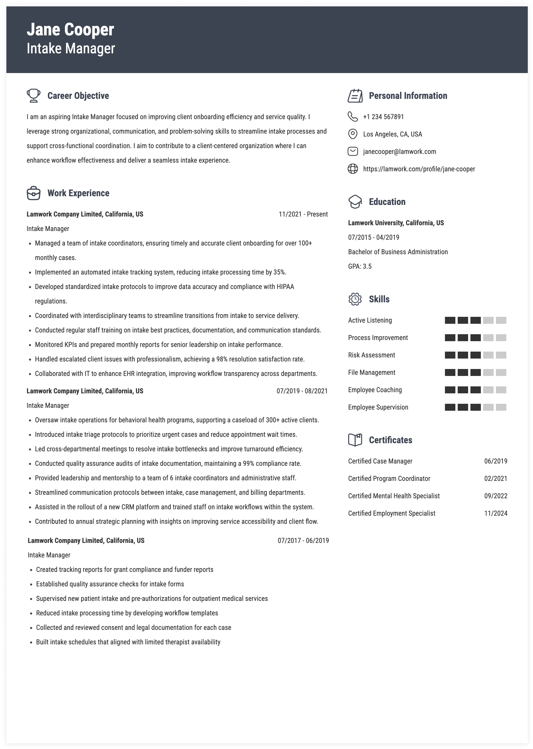 Tips for Intake Manager Skills and Responsibilities on a Resume