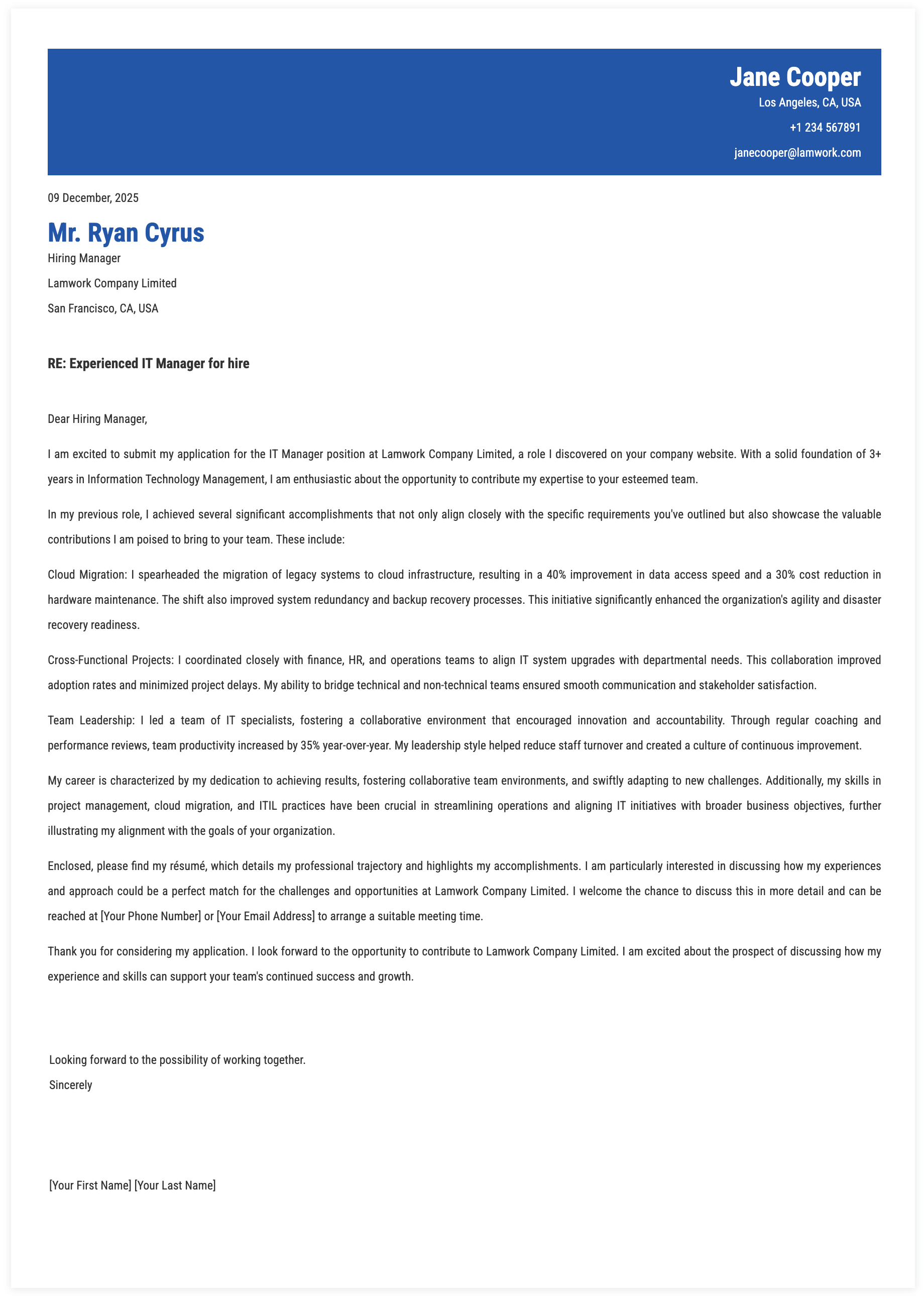 7. Expectations for Information Technology (IT) Manager Cover Letter