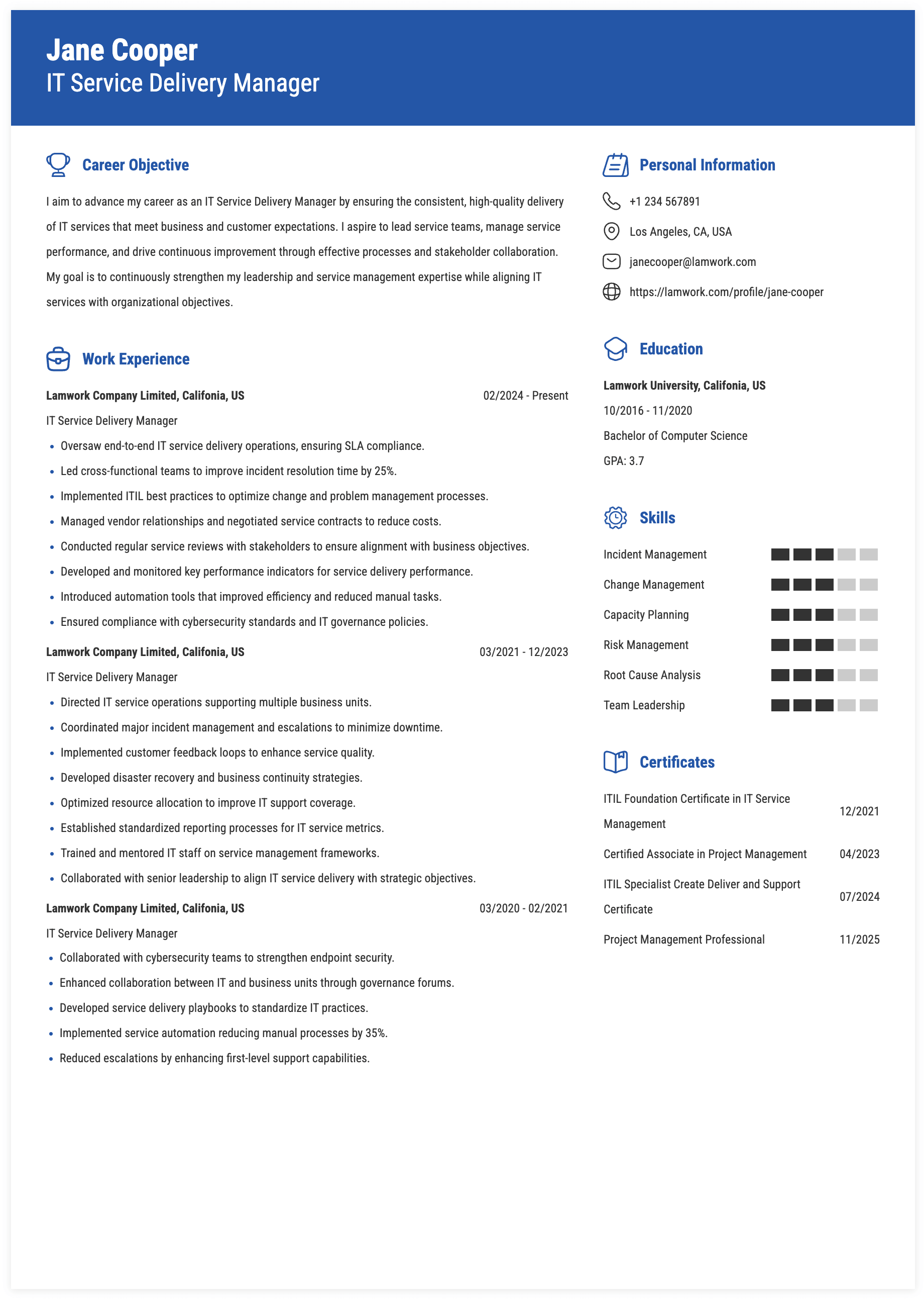 Tips for Information Technology Service Delivery Manager Skills and Responsibilities on a Resume