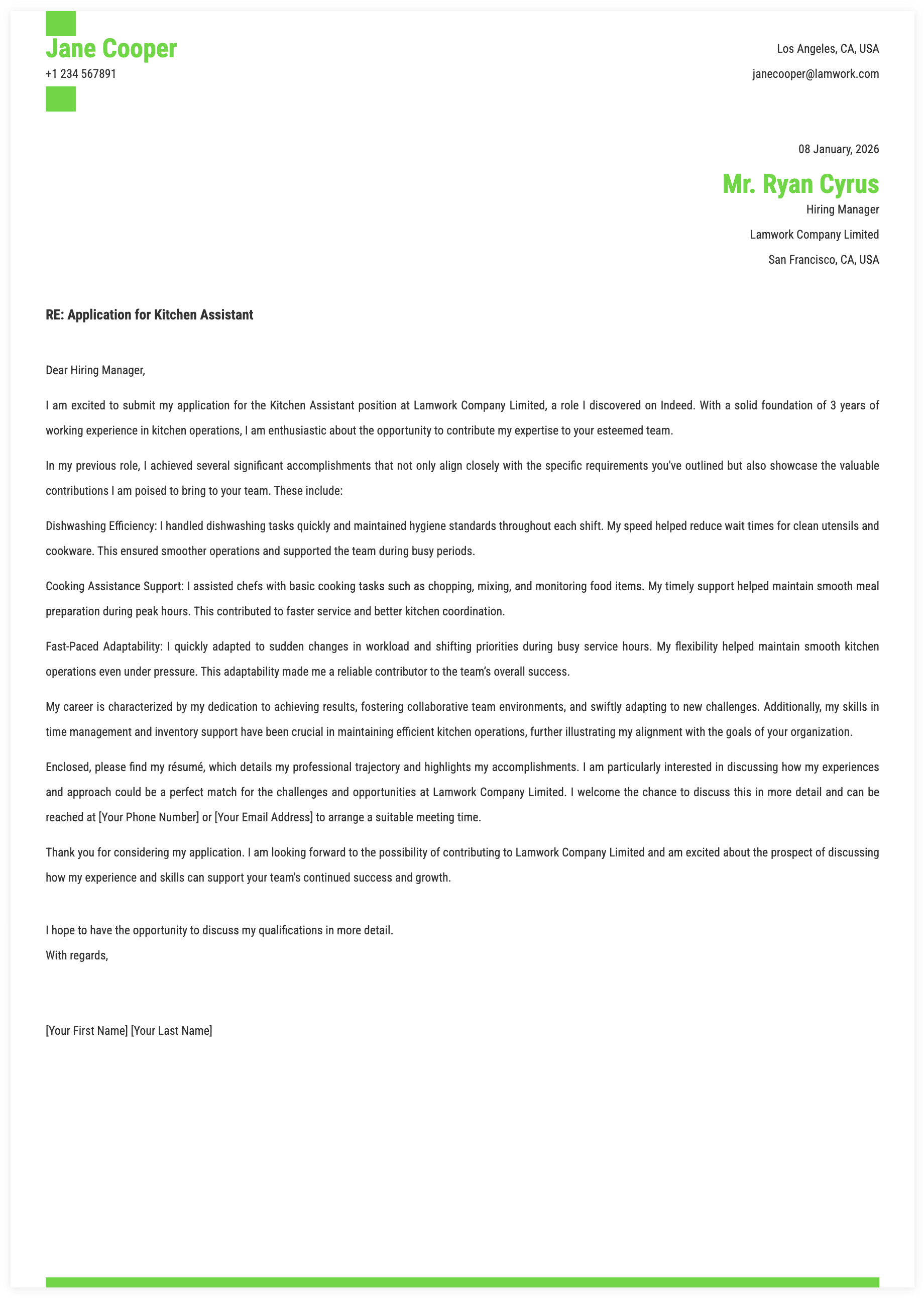 1. Accountabilities for Kitchen Assistant Cover Letter
