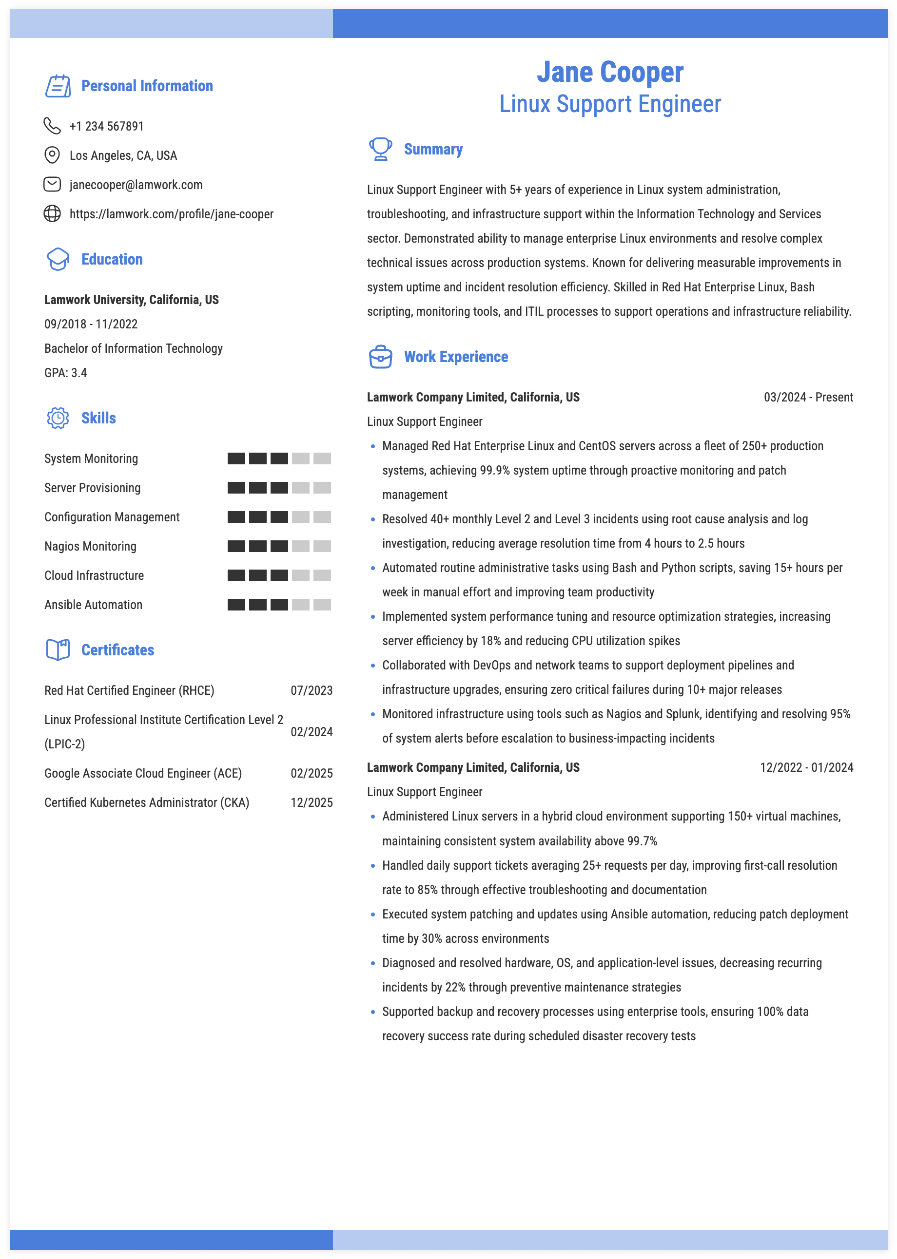 Sample ATS-Friendly Work Experience for Linux Support Engineer Roles