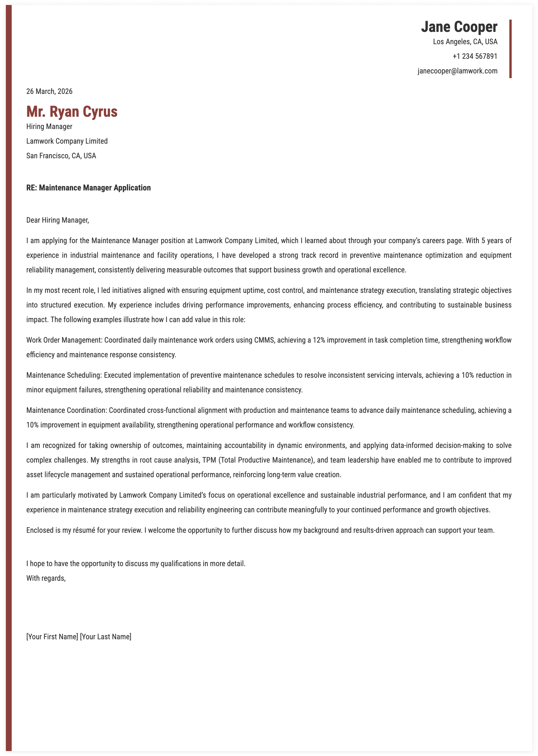 Skills, Experience, and Responsibilities to Highlight When Writing an ATS-Friendly Maintenance Manager Cover Letter