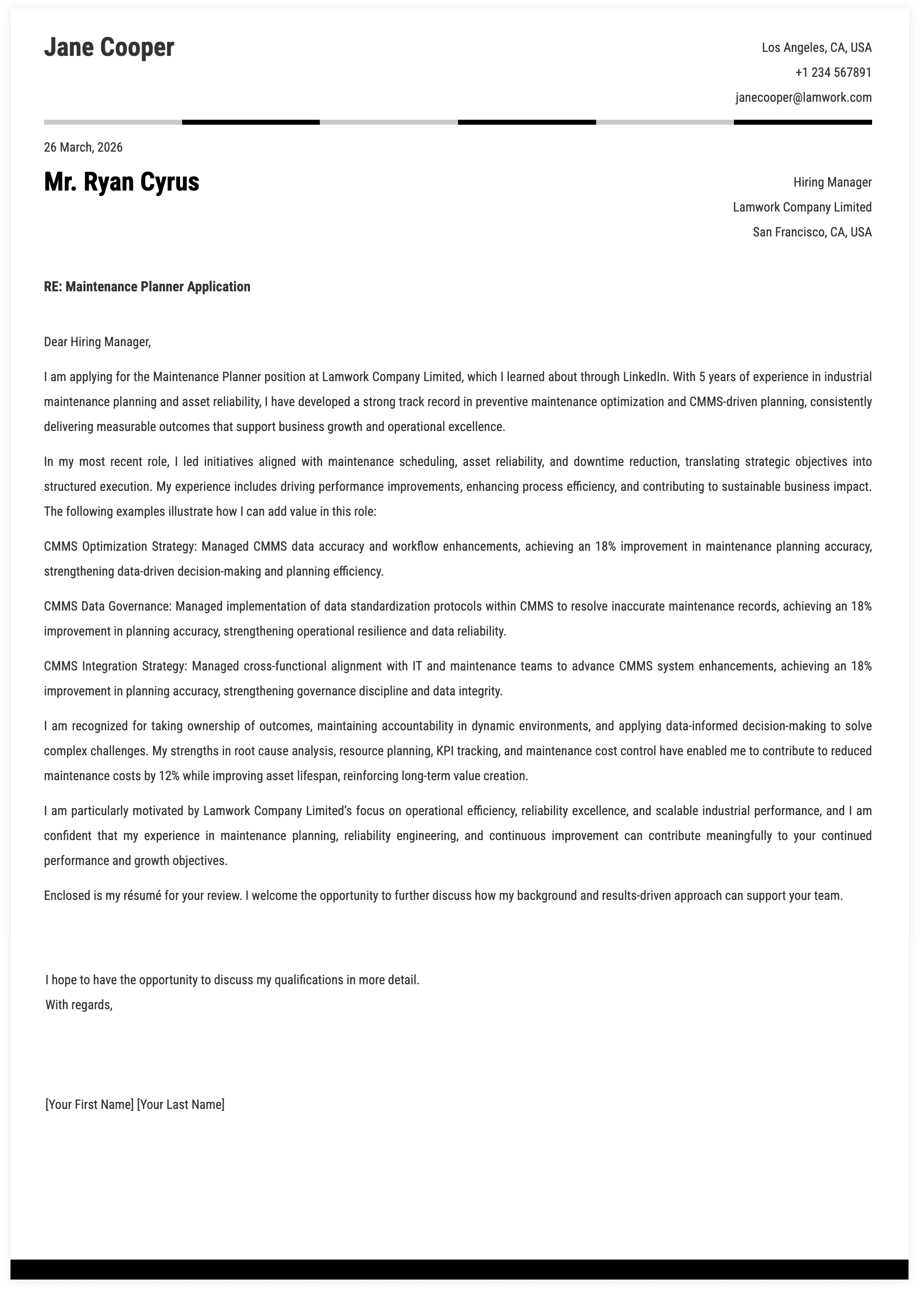 Skills, Experience, and Responsibilities to Highlight When Writing an ATS-Friendly Maintenance Planner Cover Letter